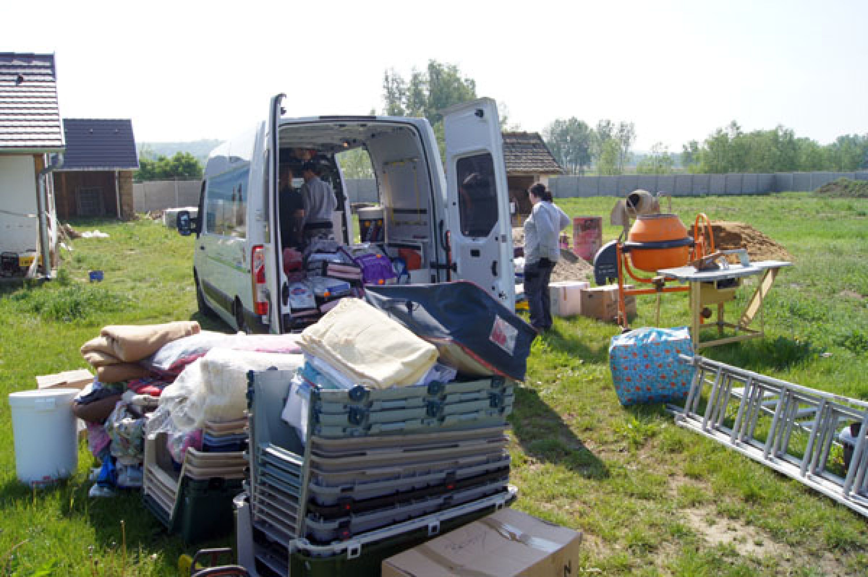 Los geht's! Um 14 Uhr ist die Gruppe startklar und fährt flott Richtung zweite Heimat. Bis zum ersten Stau am Zoll. Im Schneckentempo geht's bis Wien, gegen zwei Uhr morgens allmählich wieder etwas schneller. Ankunft nach 14 Stunden Fahrt um fünf Uhr morgens, ein kurzes Nickerchen, Frühstück und an die Arbeit.