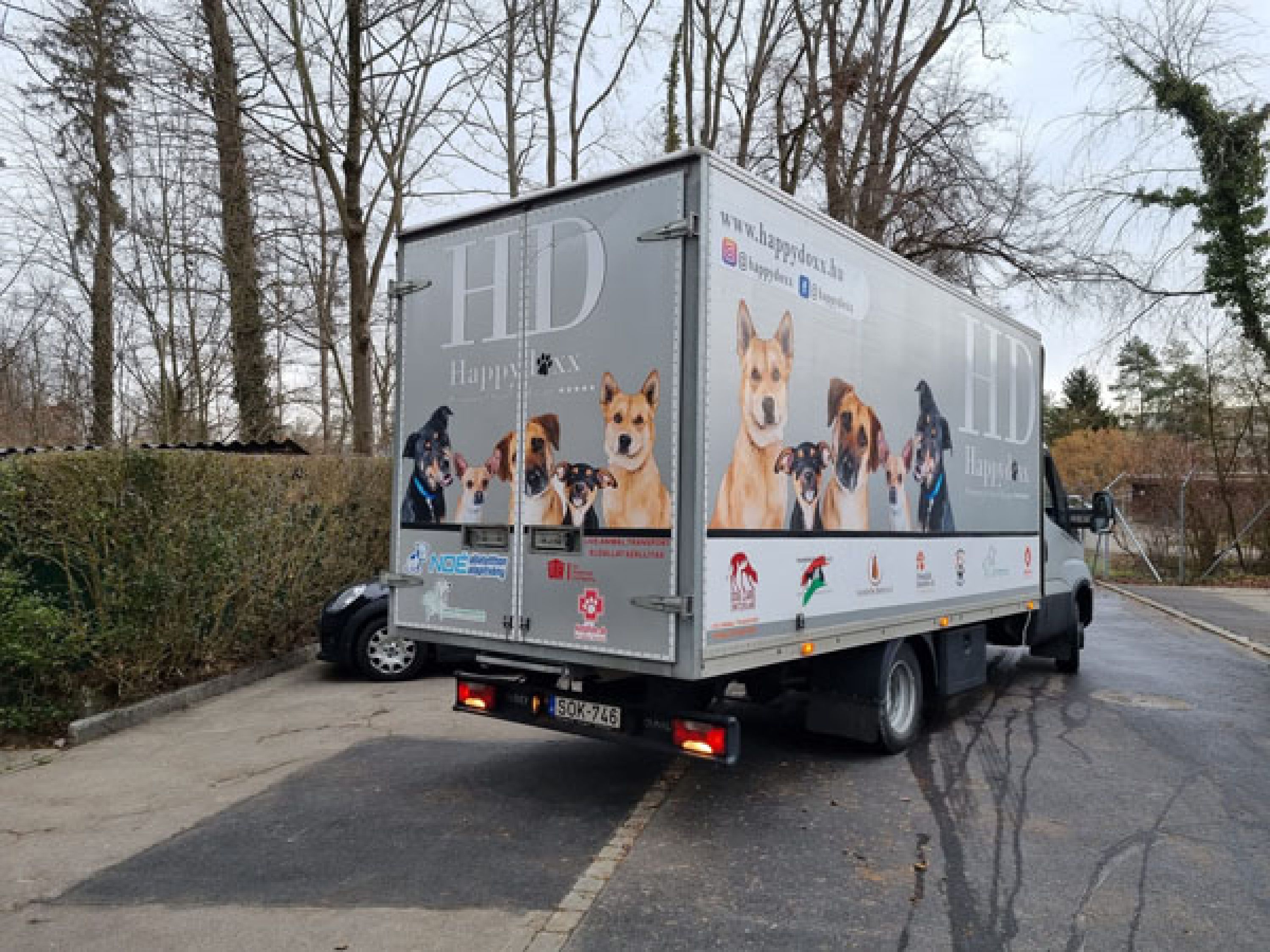 Ankunft des Transporters in Zürich. Tierarztkontrolle und Registrierung der Hunde, dann Übergabe an die neuen Besitzer.
