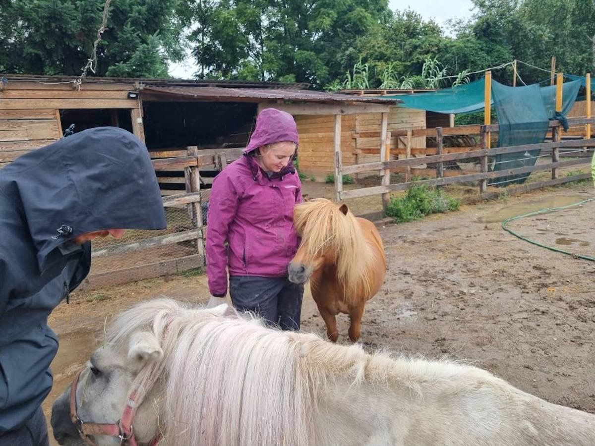 Sie ist die gute Seele im Ort und gibt alles für ALLE Tiere. Hunde , Katzen , Ziegen , Gänse , Pferde , Ponys , ein Esel und unzählige Vögel werden hier aufgepäppelt und liebevoll umsorgt.