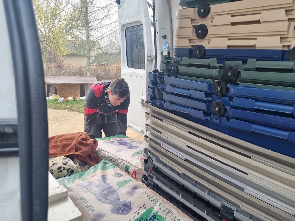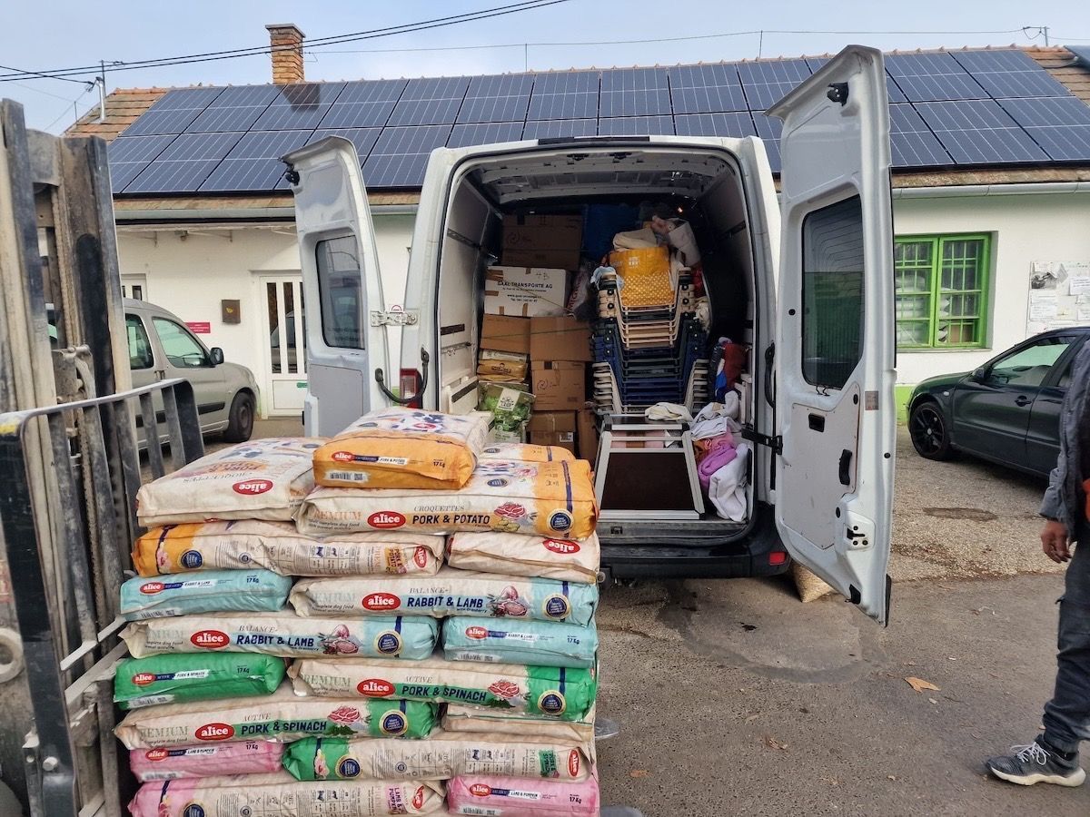 Vor Ort angekommen, wurde Schorsch zunächst von einem Teil seiner schweren Last befreit – die zahlreichen Sach- und Futterspenden konnten auf die verschiedenen Stationen aufgeteilt werden. Danach ging es ans Neu-Verladen, um alles für die nächsten Übergaben vorzubereiten.