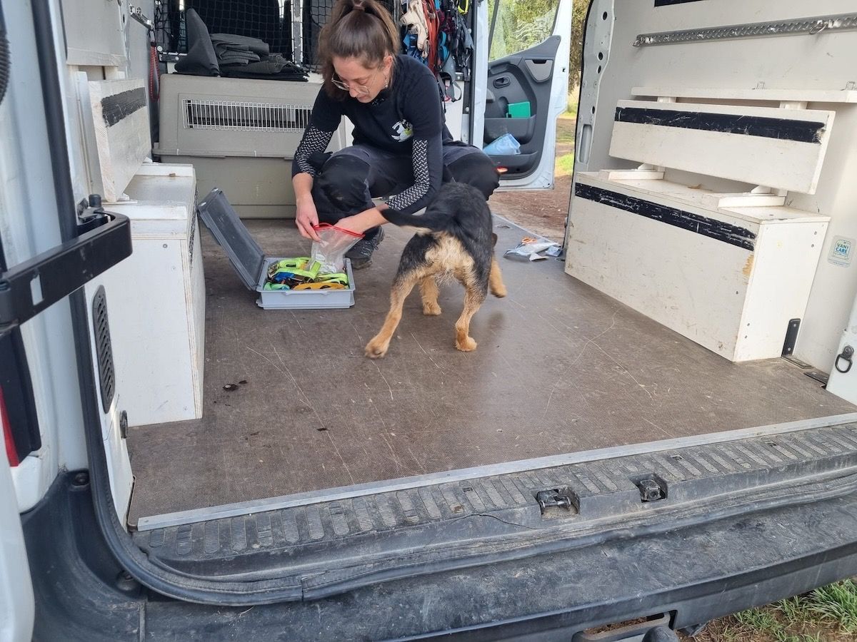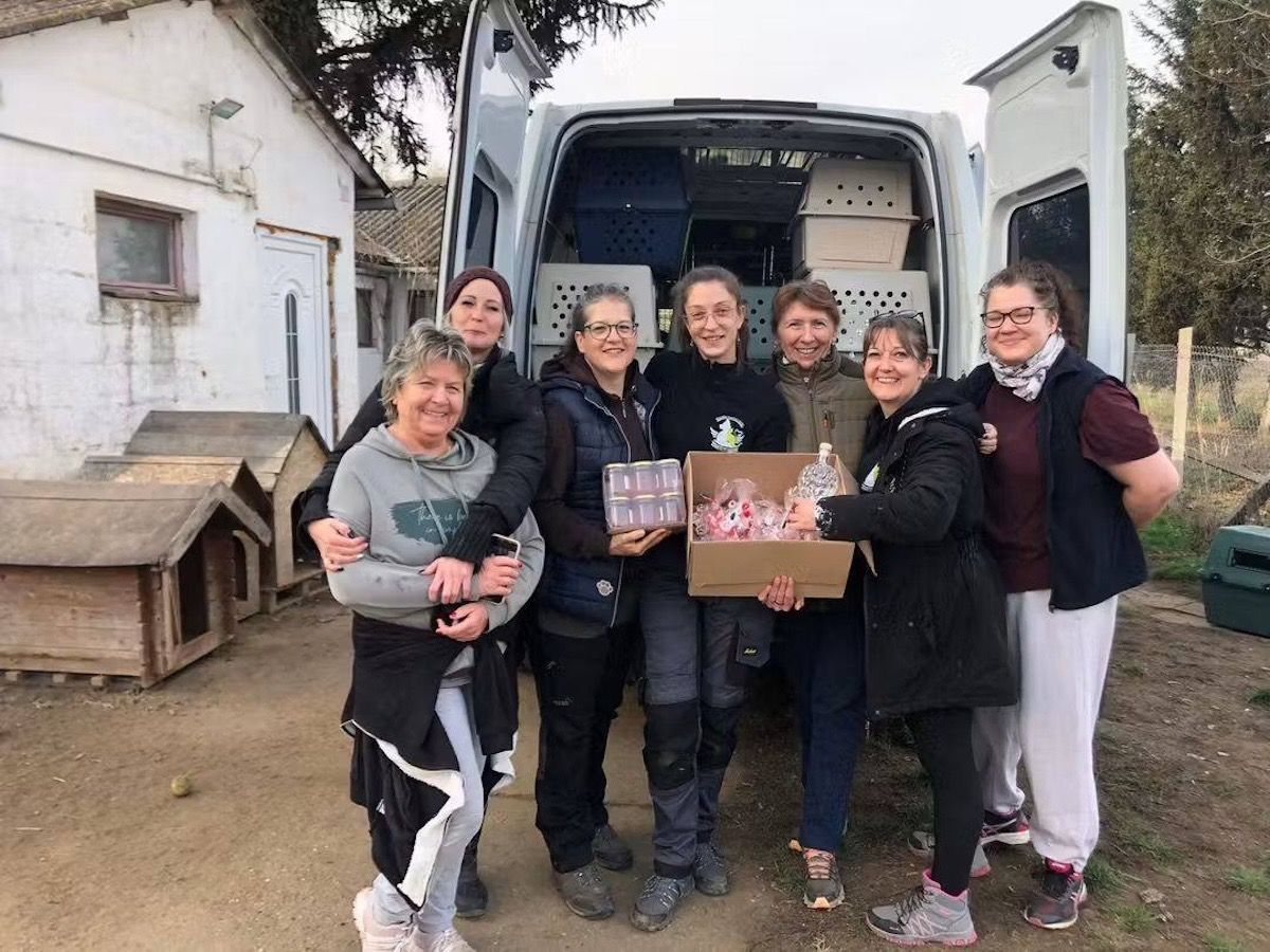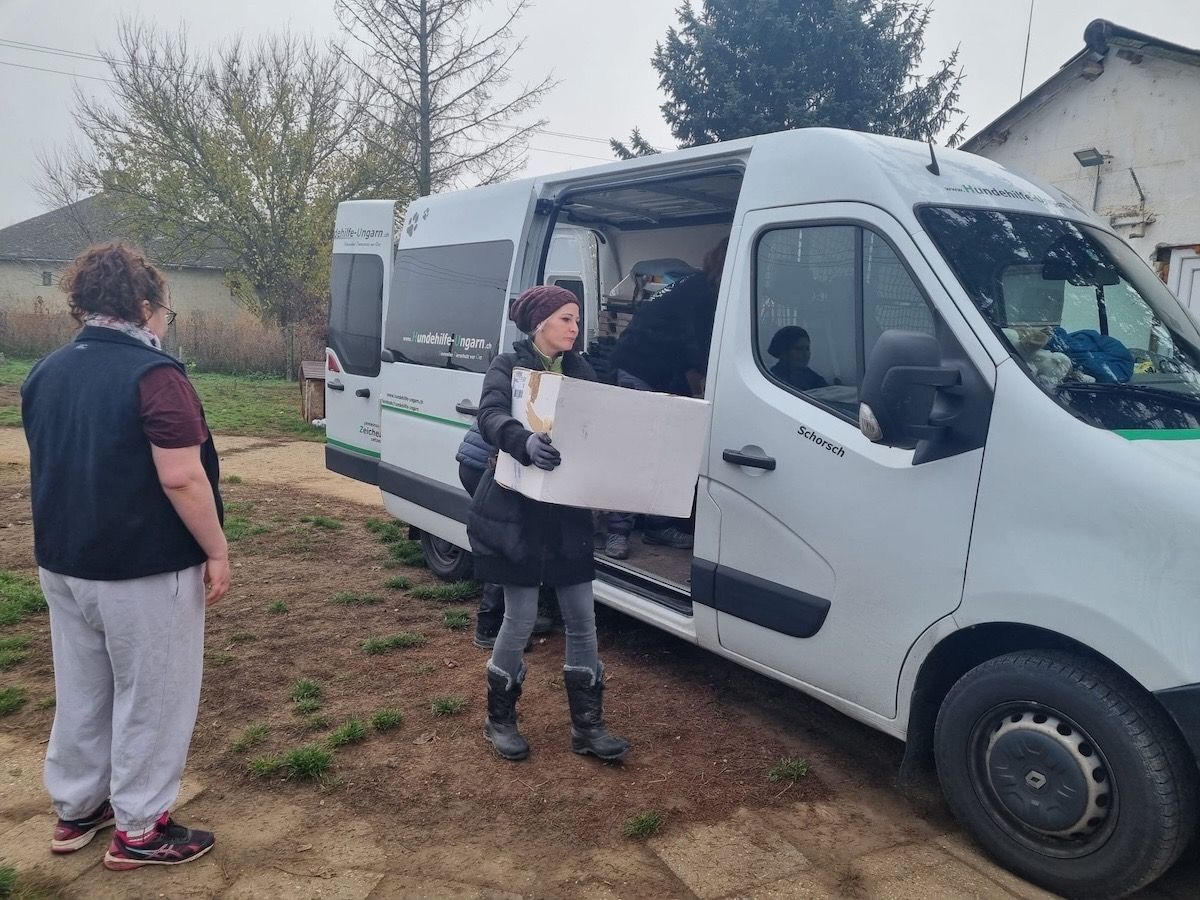 Knapp 3 Stunden Fahrt stehen ihnen noch bevor. Aber hey – wer braucht schon Schlaf, wenn man Koffein, Hunde im Herzen und eine ordentliche Portion Wahnsinn im Blut hat? Mit an Bord ist auch unser Neumitglied Sabine. Wir hoffen inständig, sie hatte eine halbwegs angenehme Fahrt …und rennt nicht schreiend in die ungarische Puszta, sobald sie aussteigen darf.