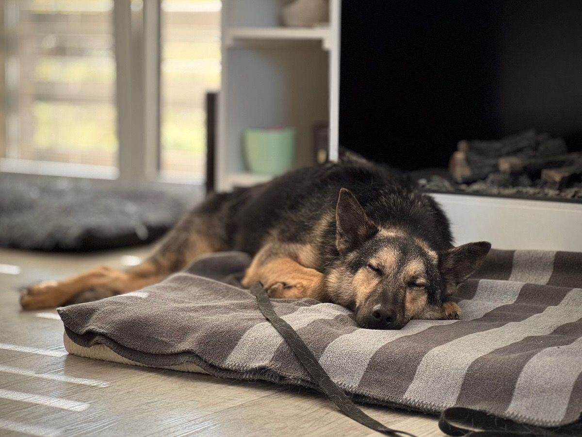 Stattdessen ein weiches, warmes Hundebett, in das er sich sinken lässt, als wollte er all die vergangene Zeit einfach von sich abfallen lassen.
