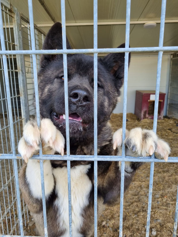 Unser bildschöner Hatshiko ist nun schon seit einiger Zeit Bewohner der Villa Wuff. Abgegeben wurde er von seinem Besitzer, weil er ihm zu gross geworden ist. Er habe Hatchi für viel Geld gekauft und war der Meinung, er bleibt ein kleiner Hund. Wir vermuten aber ganz stark, dass der ehemalige Besitzer von Hatchi total mit ihm überfordert war, denn der Akita zeigt sich in der Station eher unsozial und weniger freundlich. Seine Toleranzgrenze ist beschränkt und anfänglich durfte Keiner seinen Zwinger betreten. Dies hat sich glücklicherweise schon gebessert und die Reinigung seines Zwingers und die Futtergabe sind mittlerweile kein Problem mehr. Melinda, die Stationsleitung, vermutet zusätzlich, dass Hatshiko mehrfach geschlagen wurde, denn der Rüde ist ausser Rand und Band, wenn er einen Besen oder Ähnliches zu Gesicht bekommt. Dieser wunderschöne Hund wird vorerst in Ungarn bleiben bis er zur Ruhe gekommen ist. Wie lange Hatshiko braucht um wieder mit sich im Reinen zu sein wissen wir leider nicht, er bekommt aber alle Zeit der Welt. Deshalb suchen wir für unseren Hatchi liebe Paten, die an ihn glauben und ihn solange unterstützen und eine Freude machen wollen, bis er eventuell mal sein eigenes passendes Zuhause findet.