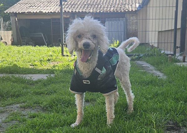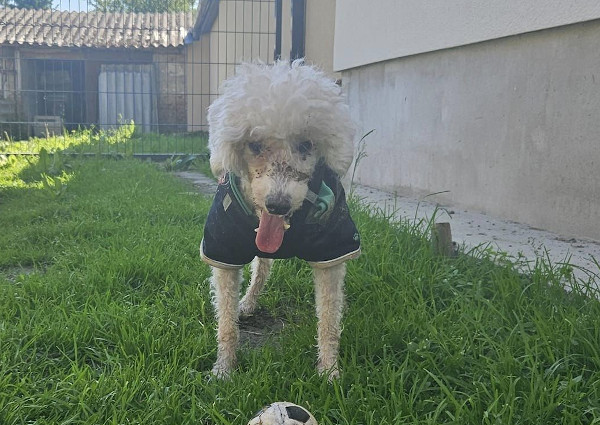 Mitte April kam unser Bátor zu Ivett ins Vereinshaus/Nagatad. Sein bisheriges erbärmliches Leben fristete er in einer kleinen verdreckten und heruntergekommen Wohnung. Die dortigen Zustände beschreibt Ivett als katastrophal und wir können uns nicht erklären, warum der Eigentümer von Bàtor es soweit hat kommen lassen und nicht früher um Hilfe gebeten hat. Für unseren Bátor war das der Befreiungsschlag, denn endlich konnte er aus seinem Martyrium befreit werden. Der allgemeine Zustand von Bátor war mehr als besorgniserregend, denn eine ordentliche Versorgung hatte nicht stattgefunden. Unser Pudelchen war voll mit Ungeziefer, hatte verfilztes Fell, viel zu lange Krallen und zudem waren all seine Zähne bereits vergammelt. Dadurch hatte Bátor natürlich auch starkes Untergewicht, denn anhand seiner unsäglichen Schmerzen war eine normale Nahrungsaufnahme nicht mehr möglich. Wir möchten uns nicht ausmalen, was dieses bedauernswerte Hündchen schon alles durchmachen musste! Bátor ist ca. 8 Jahre alt und besitzt ein liebes und freundliches Wesen. Fremden gegenüber verhält er sich anfänglich zurückhaltend. Er lässt sich berühren und auch Streicheleinheiten zu, allerdings möchte er nicht hochgenommen werden. Bátor wurde bereits tierärztlich versorgt und es geht ihm schon wesentlich besser. Trotzdem werden noch weitere Operationen bezüglich seiner Zähne von Nöten sein, da nicht alle Zähne auf einmal entfernt werden konnten. Bátor liebt es Ball zu spielen und diesen auch zu apportieren. Er geniesst also in vollen Zügen seine neu gewonnene Freiheit! Was er allerdings nicht besonders mag ist, wenn er hochgenommen wird. Dies ist ihm nicht geheuer und lässt er nur bei vertrauten Personen über sich ergehen. Grundsätzlich sollte man keine übertriebenen Erwartungen an Bátor stellen, sondern ihm die Zeit geben die er benötigt, um sich in seinem neuen Zuhause einzugewöhnen. Gerne kann unser Lockenhund als Zweithund vermittelt werden, da er sich absolut verträglich zeigt. Bátor würde sich sehr freuen, wenn sich bald liebe Menschen für ihn melden und er dann ein neues Kapitel in seinem Leben beginnen kann. Unser Wuschelkopf wünscht sich ein artgerechtes Hundeleben, mit einem eigenen weichen Körbchen, schönen Spaziergängen in der Natur, eine Familie die ihn wirklich liebt und ein Zuhause, wo er nie mehr enttäuscht wird.