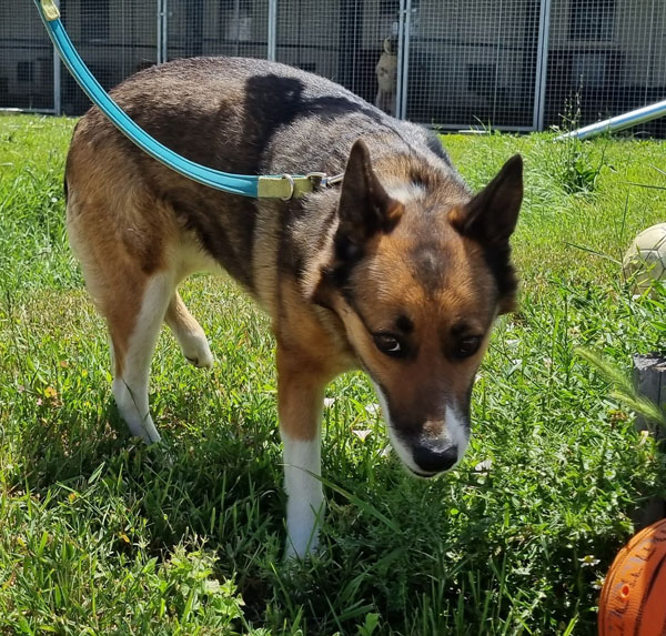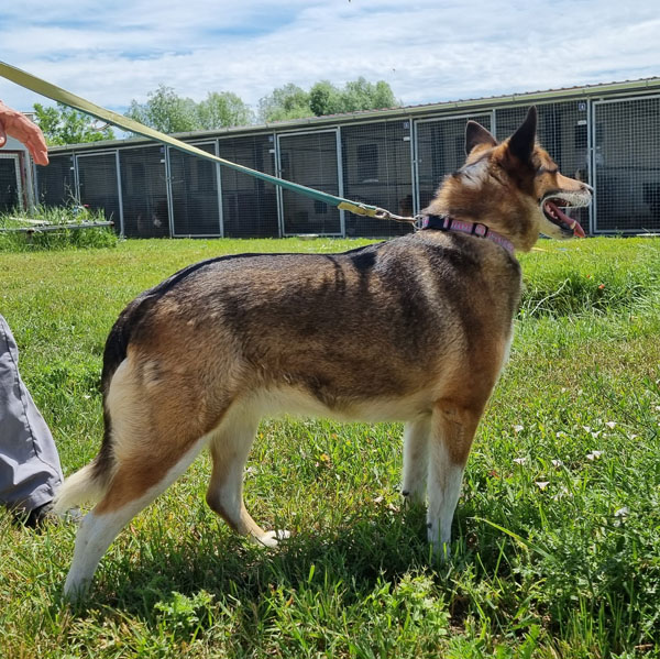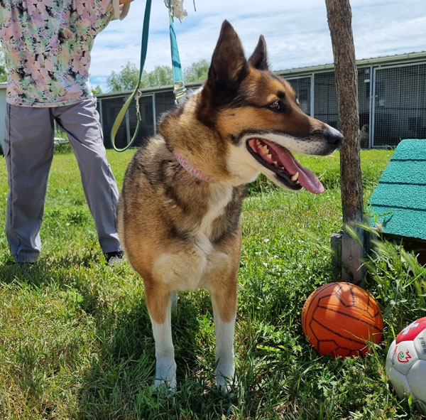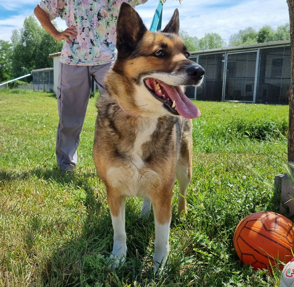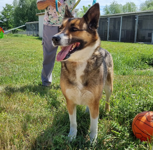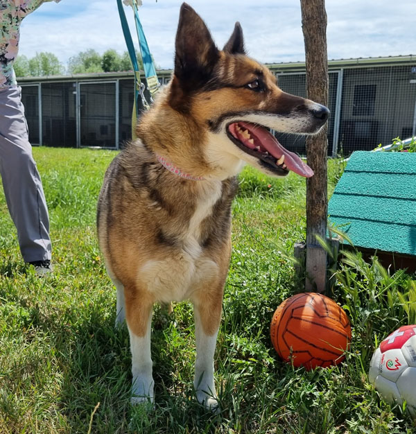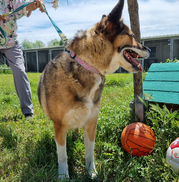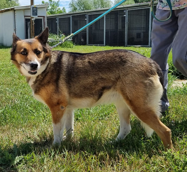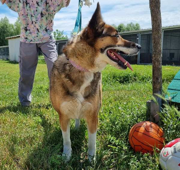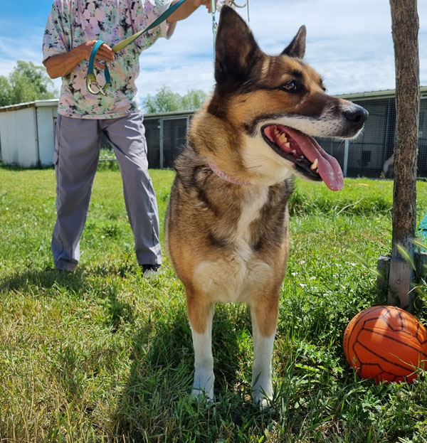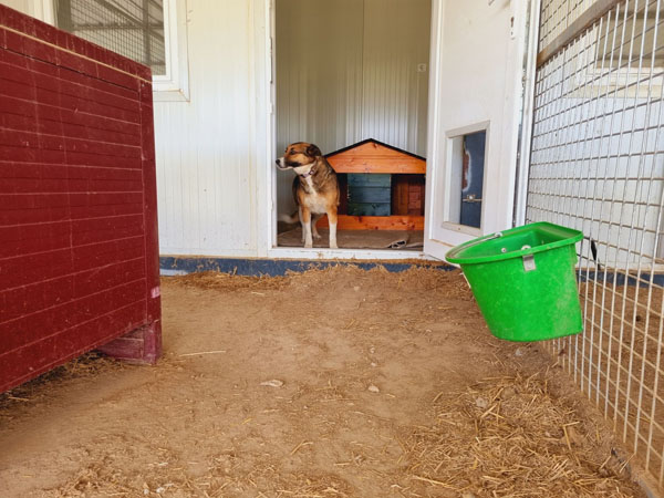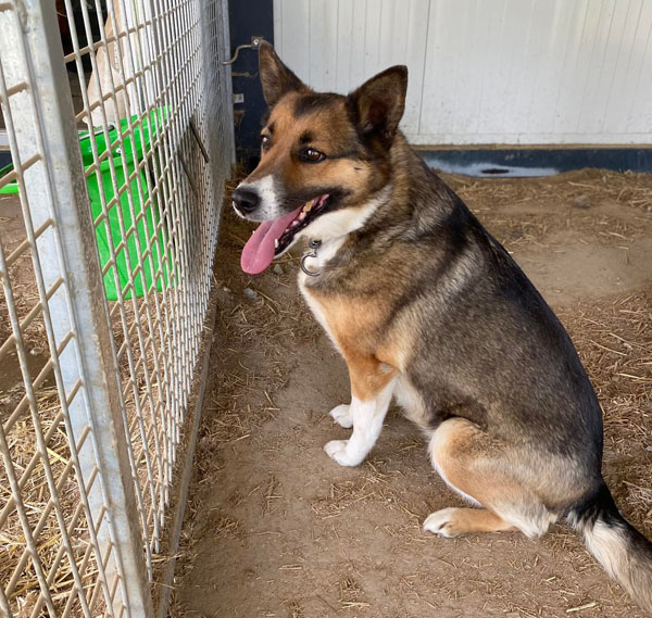 Sofi's Besitzer wollte sie beim Tierarzt einschläfern lassen, da er keine Verwendung mehr für sie hatte. Der Tierarzt verständigte daraufhin Melinda und ihr Team, welche die schöne Hündin sofort bei sich aufnahmen. Sofie ist noch sehr zurückhaltend, unterwürfig und schüchtern, sie scheint in ihrer Vergangenheit nicht viel Gutes erlebt zu haben. So lässt sie sich bisher auch nur von ihr vertrauten Menschen anfassen und aus dem Zwinger führen. Mit viel Geduld und gutem Zureden lässt sich Sofi von uns (Fremden) bis zur Tür ihres Häuschens locken, lässt auch zu, dass wir ein wenig näher kommen, verkriecht sich dann aber rasch wieder in ihre Ecke. Für Sofi suchen wir Menschen mit sehr viel Geduld und Einfühlungsvermögen, so dass sie mit der Zeit lernen kann dass ihr nichts Böses mehr droht und sie wieder Vertrauen fassen kann.