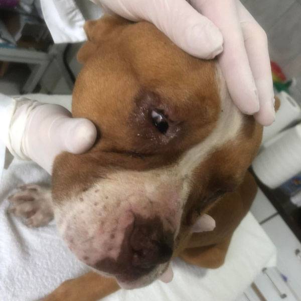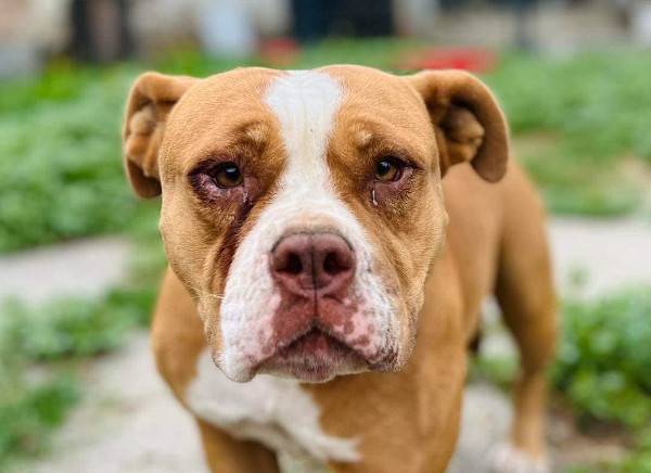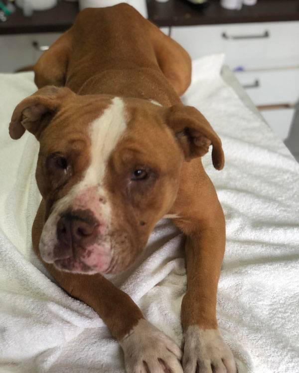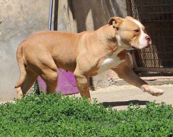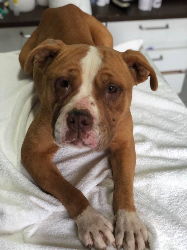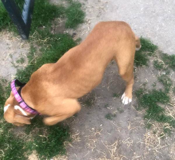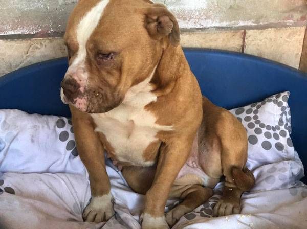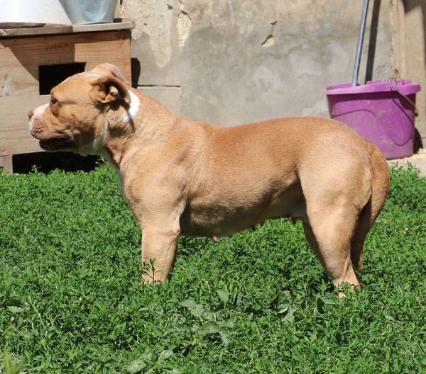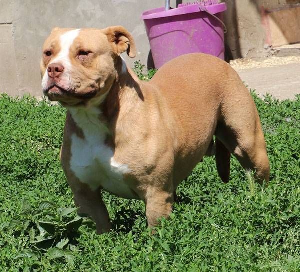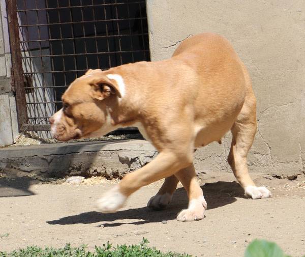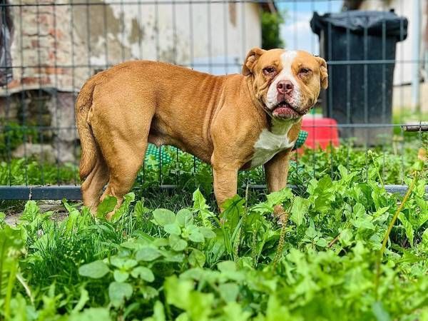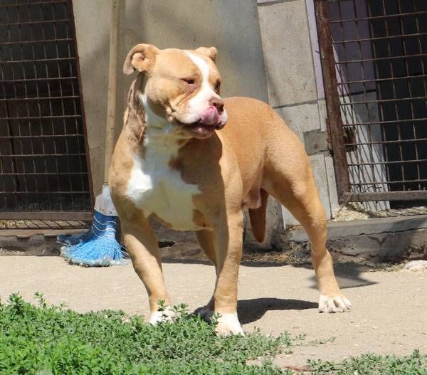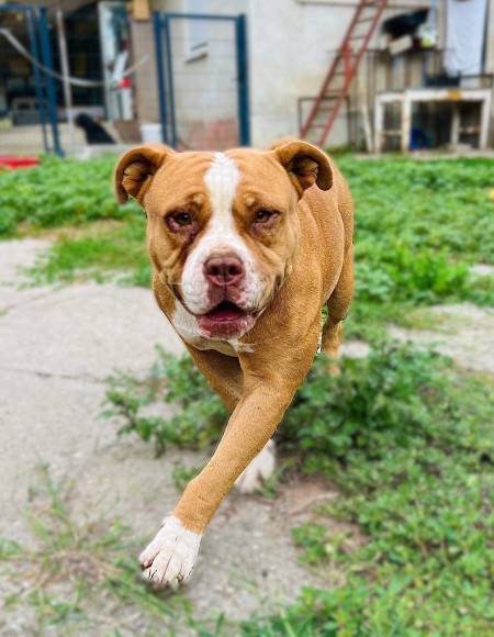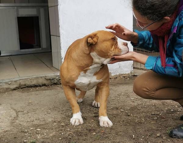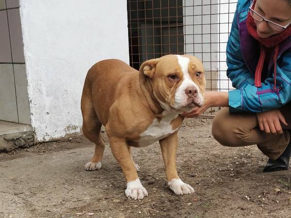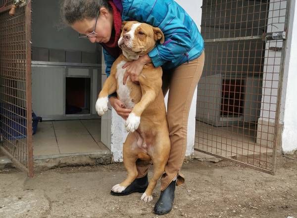 Bubu wurde Anfangs Mai zusammen mit über 70 weiteren Hunden von der Polizei aus einer Horror-Welpenfabrik befreit. Die grösstenteils erwachsenen Hunde, alles Staffis die zur "Zucht" missbraucht wurden, waren allesamt in einem katastrophalen und geschwächten Zustand. Die anwesenden Tierärze mussten einige völlig dehydrierte und zum Skelett abgemagerten Hunde notfallmässig in die Klinik bringen, offene Wunden, Geschwüre, Hautparasiten und Schlimmeres behandeln. Alle Hunde wurden auf verschiedene Tierheime verteilt, auch das Tierheim Nagyatad hat zwei dieser armen Kreaturen aufgenommen. Bubu hatte Giardien und erhielt die entsprechenden Medikamente, ausserdem chronisch entzündete Augen, die eingerollten Augenlider mussten operiert werden. Trotz all der erlittenen Qualen ist Bubu eine liebe Hündin, die sich anfänglich aber recht zurückhaltend zeigt. Sie ist verträglich mit anderen Hunden.