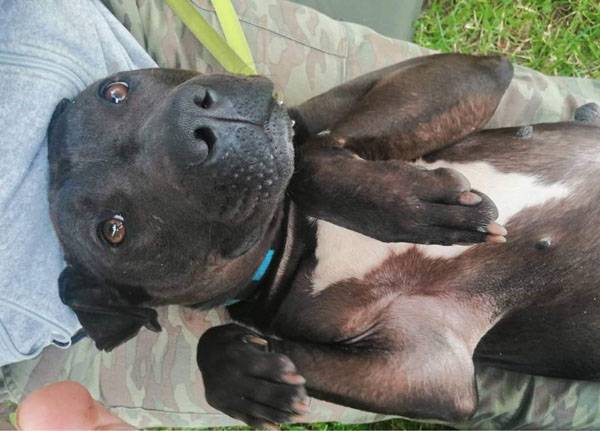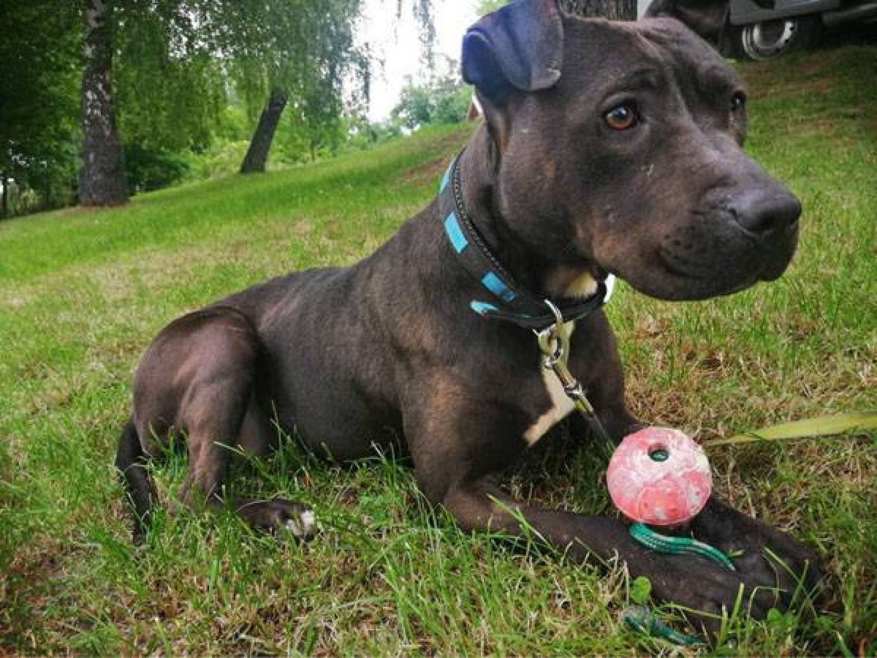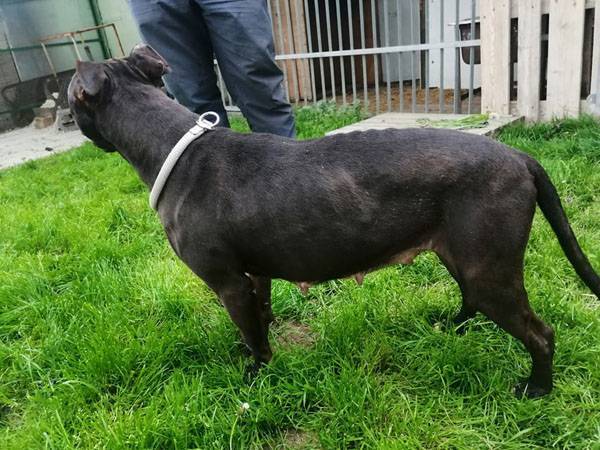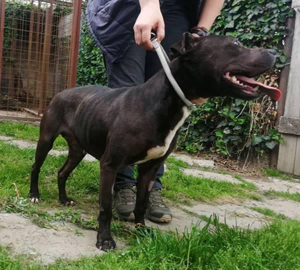 Cuki wurde Anfangs Mai zusammen mit über 70 weiteren Hunden von der Polizei aus einer Horror-Welpenfabrik befreit. Die grösstenteils erwachsenen Hunde, alles Staffis die zur "Zucht" missbraucht wurden, waren allesamt in einem katastrophalen und geschwächten Zustand. Die anwesenden Tierärze mussten einige völlig dehydrierte und zum Skelett abgemagerten Hunde notfallmässig in die Klinik bringen, offene Wunden, Geschwüre, Hautparasiten und Schlimmeres behandeln. Alle Hunde wurden auf verschiedene Tierheime verteilt, auch das Tierheim Nagyatad hat zwei dieser armen Kreaturen aufgenommen. Cuki hatte Herzwürmer die umgehend behandelt werden mussten. Trotz all der erlittenen Qualen ist Cuki eine zutrauliche Hündin und hätte nach all den Erlebnissen jetzt lieber einen Einzelplatz, den sie nicht mehr mit anderen teilen muss.