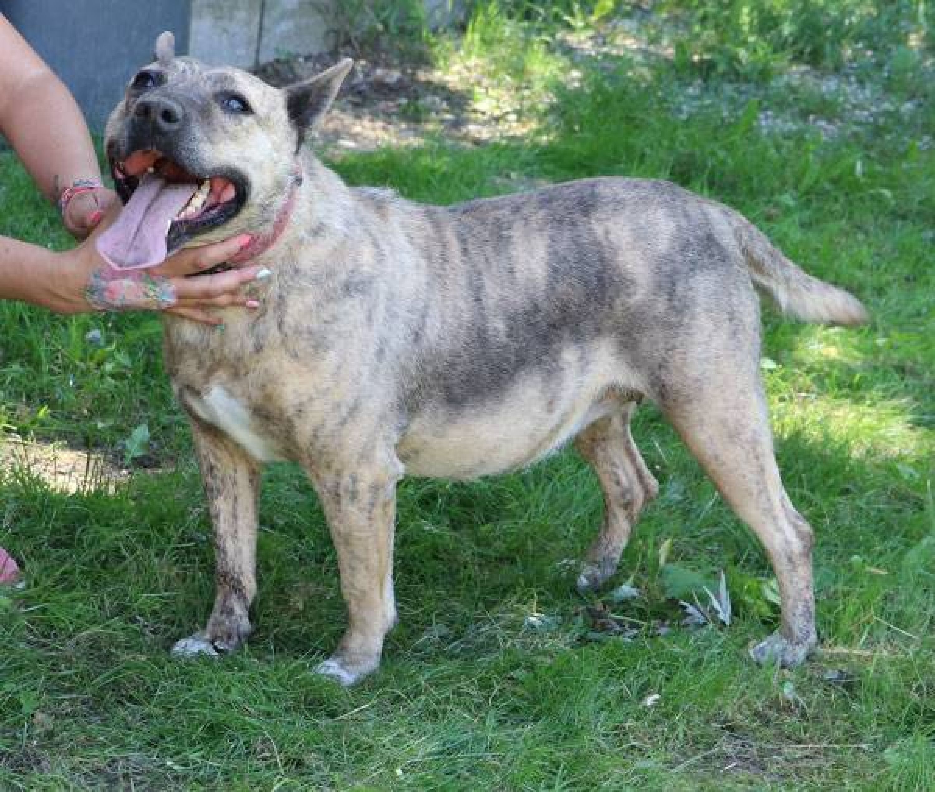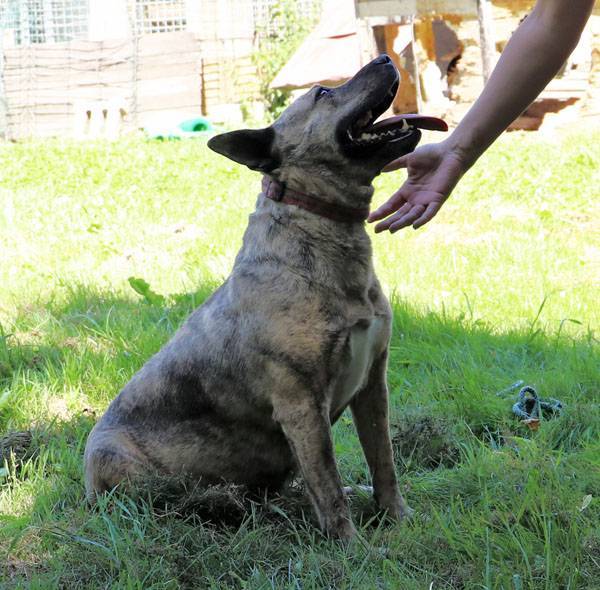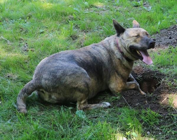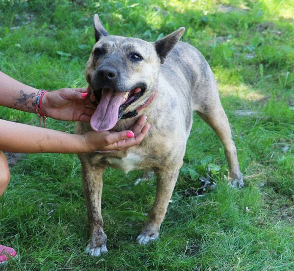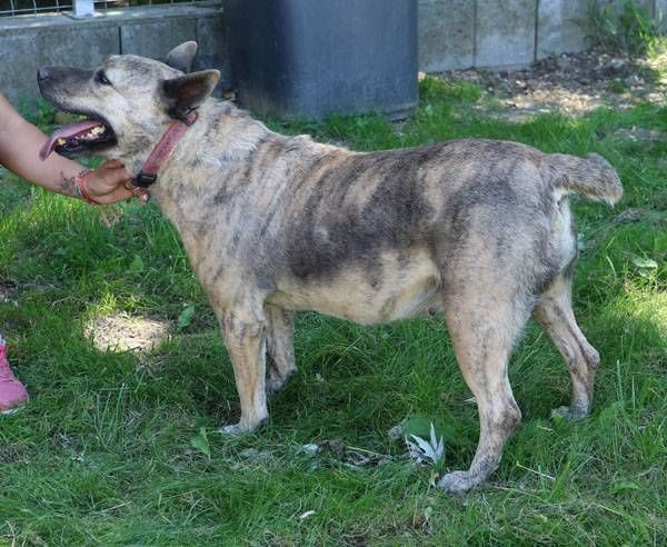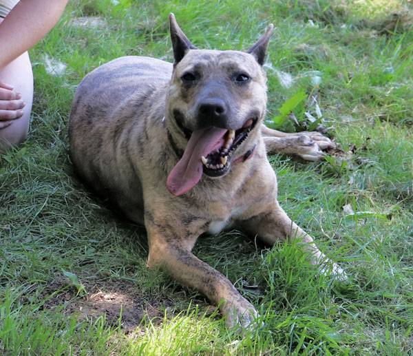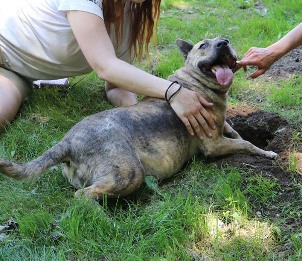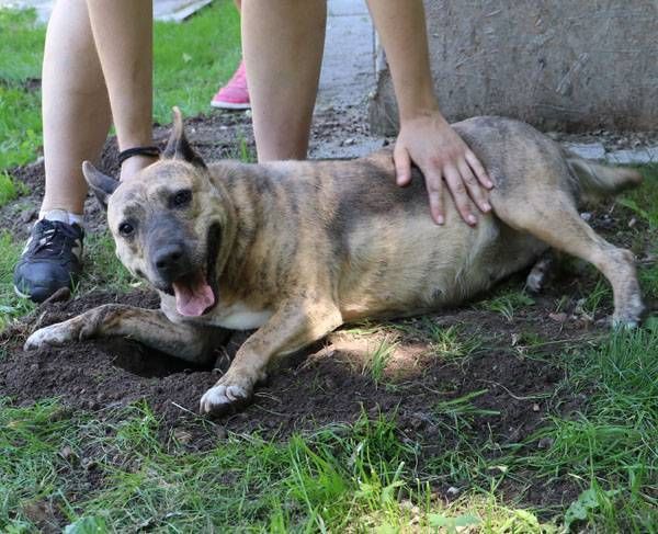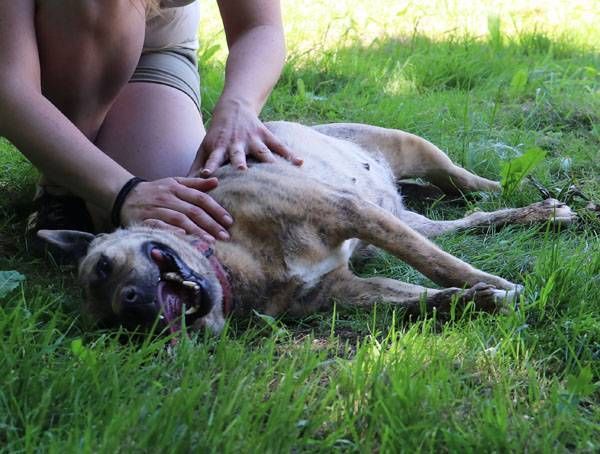 Muci wurde auf der Strasse gefunden. Sie ist Menschen, auch Fremden gegenüber absolut freundlich, zutraulich und lieb und sucht den Kontakt zu ihnen. Wie die meisten Hunde muss auch Muci sich zuerst einmal ein wenig auspowern wenn sie in den Freilauf gelassen wird. Hat das fröhliche kleine Kraftpaket einige Runden gedreht, wird alles etwas ruhiger und nun wird gekuschelt. An diesem heissen Sommertag freute sich Muci, ein paar Löcher zu graben und hinein zu liegen, da ist es etwas kühler. Noch ein paar Runden, die Hunde in den angrenzenden Zwingern werden nicht beachtet, und wieder zurück, ein paar Streicheleinheiten abholen. Schade, dass wir solche Hunde nicht vermitteln dürfen.
