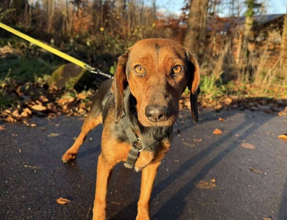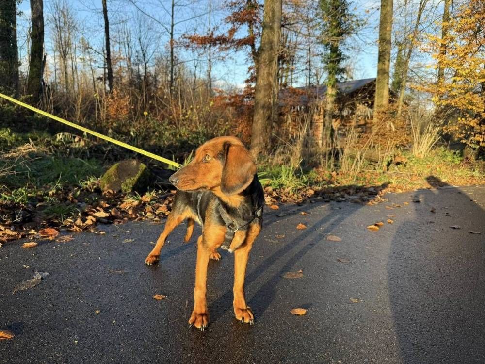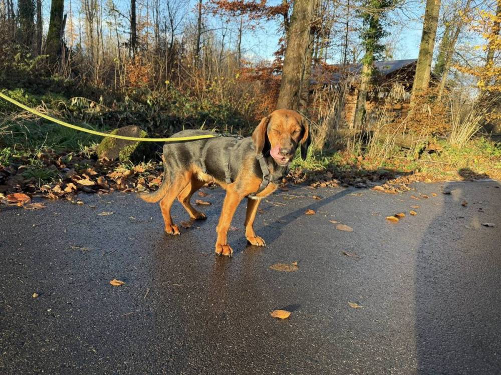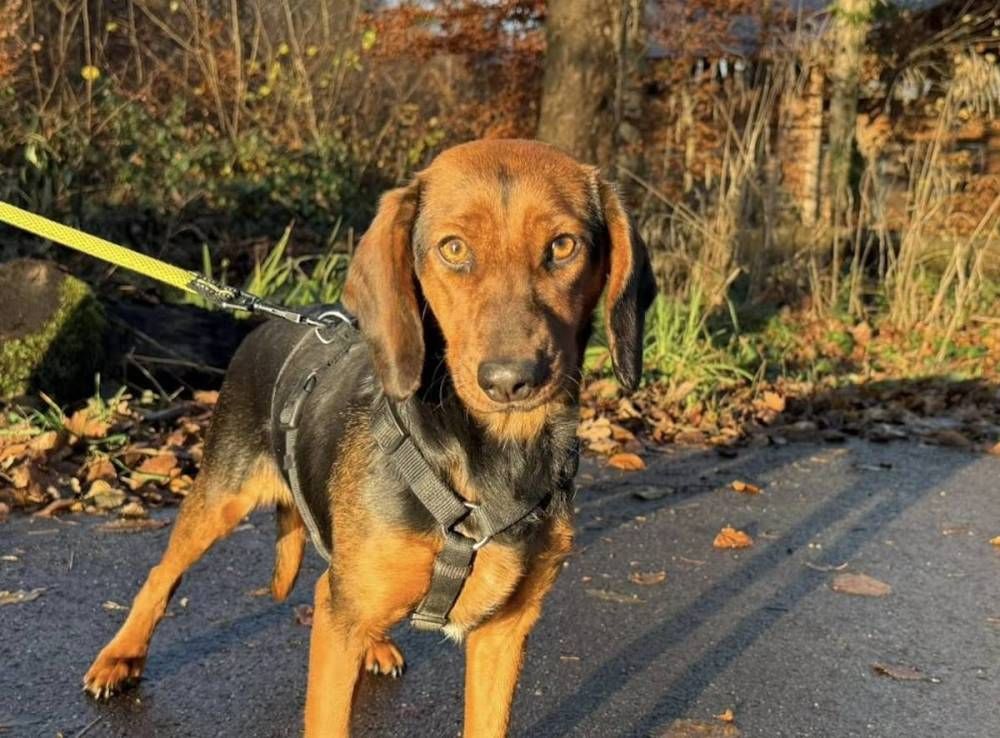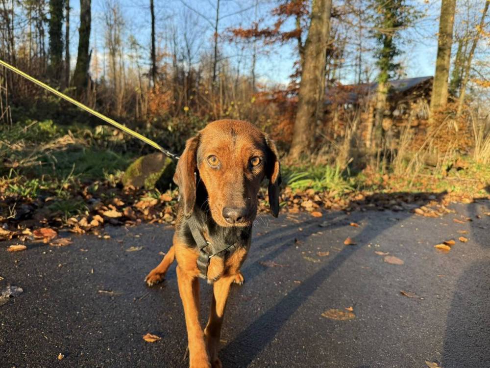 Die liebe Aisha ist etwa 3 Jahre alt (Stand 05/2025) und ein zartes Bracken-Mix Mädchen mit einem besonders freundlichen Wesen. Sie wurde allein und in keinem guten Zustand im Wald gefunden. Aisha litt damals unter Demodex, doch inzwischen ist alles wunderbar verheilt und sie hat sich toll erholt. Aisha ist eine sehr soziale und verträgliche Hündin, die sich mit ihren Artgenossen gut versteht. Menschen begegnet sie im ersten Kontakt behutsam, doch mit ein wenig Geduld taut sie schnell auf und zeigt sich dann als anhängliche, sanfte Begleiterin mit viel Herz. Alles in Allem bringt Aisha einen tollen Charakter mit und eventuell auch einen Jagdtrieb. Über Letzteres sollte man sich vor der Anschaffung Gedanken machen und vorbereitet sein. Bracken wurden ursprünglich für die Arbeit in Wäldern gezüchtet, sie gelten als ausdauernd, intelligent und menschenbezogen. Aisha benötigt also eine angemessene Beschäftigung. Mit spannenden Spielen und sinnvoller Auslastung bleibt sie nicht nur lange fit, sondern es stärkt auch die Bindung zwischen Hund und Mensch. Täglich abwechslungsreiche Spaziergänge sollten zum Basisprogramm gehören und natürlich sollte Aisha zusätzlich noch einige Dinge vom Hunde-Basiswissen mit Ruhe und Geduld beigebracht bekommen. Wir suchen ausgeglichene Menschen, die an ihr neues Familienmitglied vorerst keine übertriebenen Erwartungen stellen, sie ihr Tempo zur Eingewöhnung selbst bestimmen lassen und Verständnis zeigen, wenn nicht gleich alles von Anfang an optimal läuft. Für unsere hübsche Aisha suchen wir weiterhin ein verantwortungsbewusstes, liebevolles und dauerhaftes Zuhause!