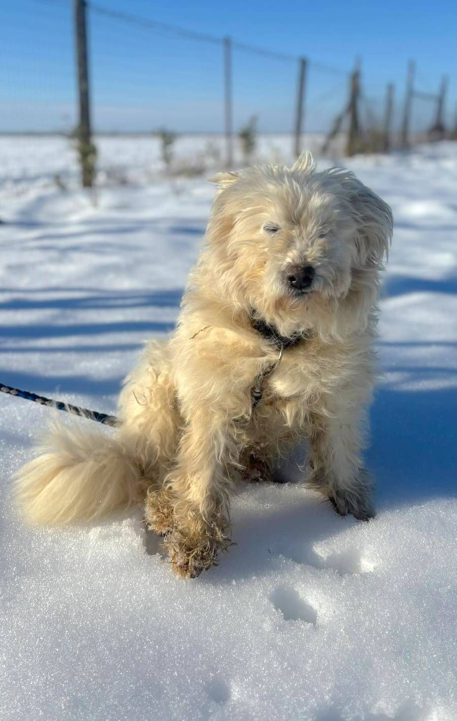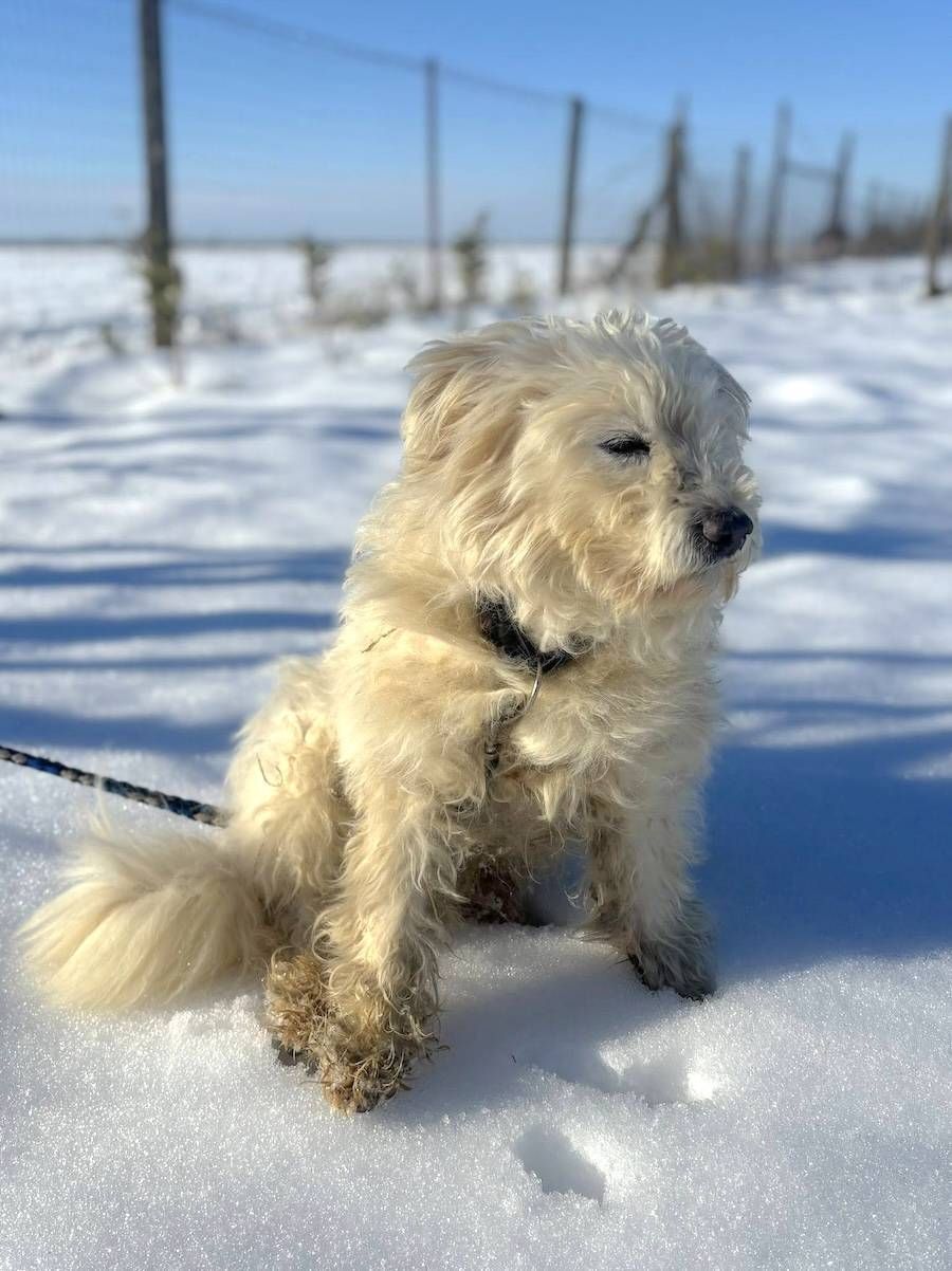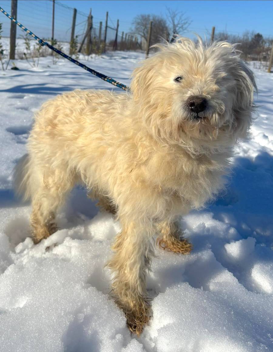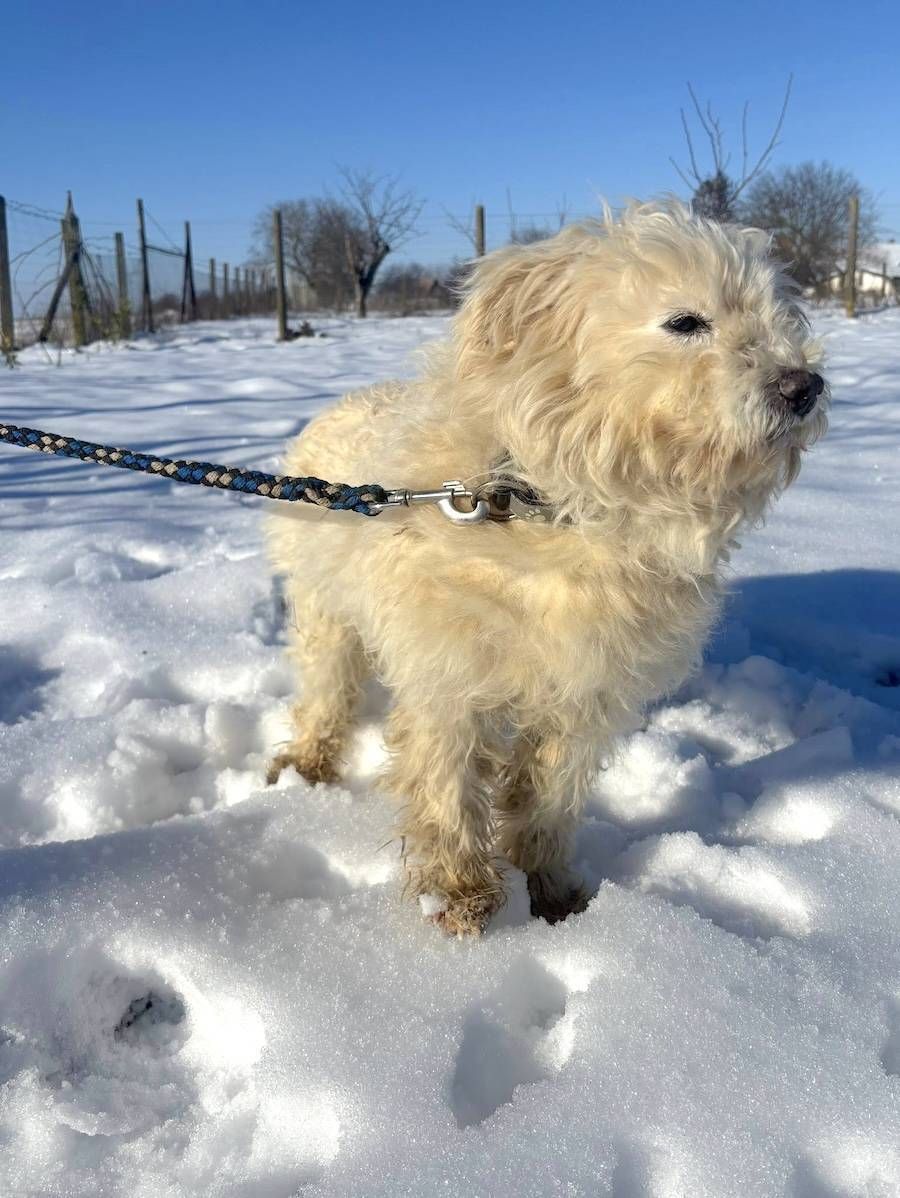 Die Geschichte von unserem ca. 11 Jahre alten (vielleicht auch älter) Buksi ist sehr traurig und eigentlich auch unvorstellbar, aber leider nicht ungewöhnlich. Etwa vier bis fünf Jahre lebte Buksi allein im Hof eines unbewohnten Hauses. Nachdem sein Besitzer 2021 verstarb, wurde das Anwesen ein Jahr später verkauft und die Erben ließen ihn einfach dort. Der neue Eigentümer versuchte, eine Lösung für ihn zu finden, doch am Ende musste er wegziehen nach Budapest, und Buksi blieb erneut allein zurück. Im Januar 2025 fand Buksi bei Dora dann einen Unterschlupf und sein Zustand war mehr als besorgniserregend. Verwahrlost, mit stark verfilztem Fell und Schmerzen wurde er umgehend erstversorgt. In der Tierklinik stellte sich dann heraus, dass sich durch seine schlechten Zähne eine schmerzhafte Fistel gebildet hatte. Die kranken Zähne wurden entfernt, doch im Frühjahr begann ein Auge plötzlich stark zu tränen. Eine Granne hatte sich über die Fistel bis zum Auge gearbeitet. Nach mehreren Tierarztbesuchen wurde schließlich auch ein Geschwür entdeckt und operativ entfernt. Heute kann Buksi mit dem Auge zumindest noch ein wenig sehen und vor allem schmerzfrei leben. Trotz allem ist Buksi ein liebevoller, ruhiger Hund, der sich sehr nach Nähe und Geborgenheit sehnt. Er ist dankbar für jede Streicheleinheit und freut sich über die kleinste Zuwendung. Er hat in seinem Leben viel durchgestanden, aber sein Herz ist ungebrochen. Buksi ist gewiss ein toller Begleiter und Gefährte für Menschen, welche die Gesellschaft eines älteren Vierbeiners lieben und schätzen. Bei betagten Hundeherrschaften ist es meistens auch so, dass die Ansprüche an die körperlichen Aktivitäten nicht mehr so hoch sind, aber die liebevollen Zuwendungen und Aufmerksamkeiten dafür umso mehr genossen werden. Wir suchen geduldige und erfahrene Hundefreunde, die an ihr neues Familienmitglied keine übertriebenen Erwartungen stellen, Buksi das Tempo zur Eingewöhnung selbst bestimmen lassen und Verständnis zeigen, wenn nicht gleich alles von Anfang an optimal läuft. Für unseren charmanten Senior suchen wir also einen schönen und dauerhaften Rentenplatz, wo er so sein darf wie er ist, Sicherheit bekommt und seinen Lebensabend in vollen Zügen geniessen kann.