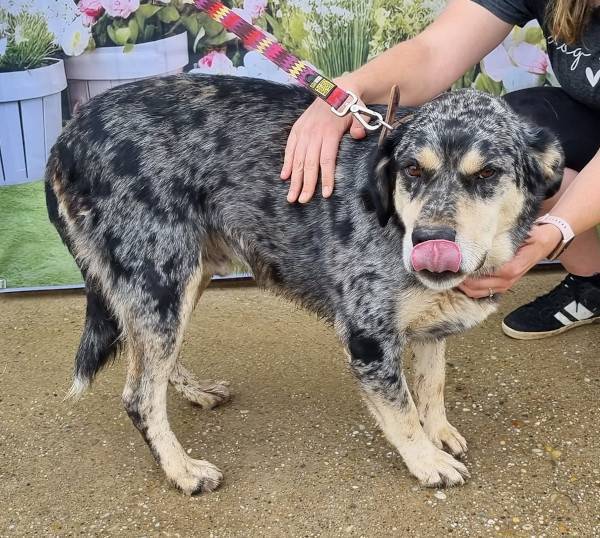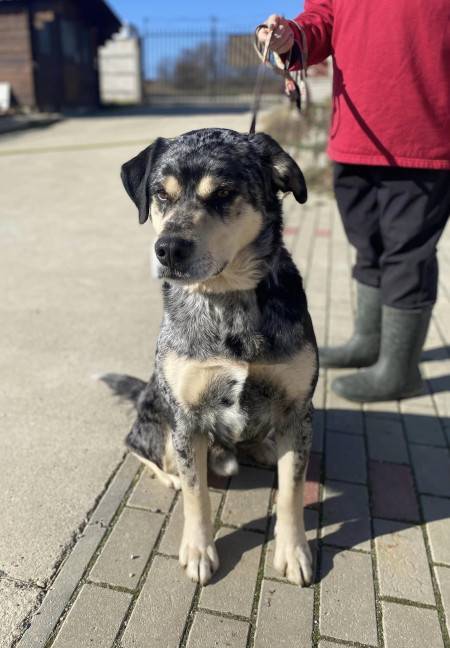 Morgo ist ein bildhübscher Mischlingsrüde, der am 10.10.2022 geboren wurde und in seiner Vergangenheit kein schönes Leben hatte. Er wurde von seinem Besitzer an einer Kette gehalten und sein Halsband war mit mehreren Schrauben fixiert. Bei der Abgabe von Morgo in der Villa Wuff konnte das Halsband nur mit Mühe vom Besitzer selbst entfernt werden. Eine schmerzhafte Erfahrung, die Morgo zum Glück hinter sich hat. Trotz seiner Vergangenheit zeigt sich Morgo als lernwilliger und liebenswerter Hund, der mittlerweile gut an der Leine läuft und gerne spazieren geht. Mit Hündinnen versteht er sich gut, bei Rüden entscheidet allerdings die Sympathie. Morgo sucht ein Zuhause bei erfahrenen Hundeliebhabern, die ihm mit Geduld und Einfühlungsvermögen begegnen. Er braucht Zeit, um Vertrauen aufzubauen, und sollte nicht bedrängt werden. Wenn man ihm die Möglichkeit gibt, sein Tempo selbst zu bestimmen, zeigt er sich von seiner besten Seite. Natürlich muss auch unser Morgo erst noch verstehen wie ein Hundeleben richtig funktioniert, deshalb sollten seine Menschen Freude daran haben, mit ihm das Hunde-ABC liebevoll konsequent zu üben und ihn geduldig an die ihm noch unbekannten Dinge des Alltags heranführen. Da Morgo kein Hund für Ersthundehalter ist, setzen wir Hundeerfahrung bei einer Vermittlung voraus. Morgo möchte zukünftig mit seinen neuen Menschen auf Entdeckungstour gehen und endlich die grosse weite Welt erkunden. Für unseren unternehmungslustigen Vierbeiner suchen wir gleichgesinnte Zweibeiner mit viel Zeit, die Spass daran haben seinen Bewegungsdrang zu befriedigen und ihn hundegerecht sowohl körperlich als auch geistig auslasten. Morgo ist sicherlich kein Couchpotato! Er will geliebt werden, dazu gehören und durchstarten! Wo darf er nun endlich mit seiner eigenen Familie glücklich werden und für immer bleiben?