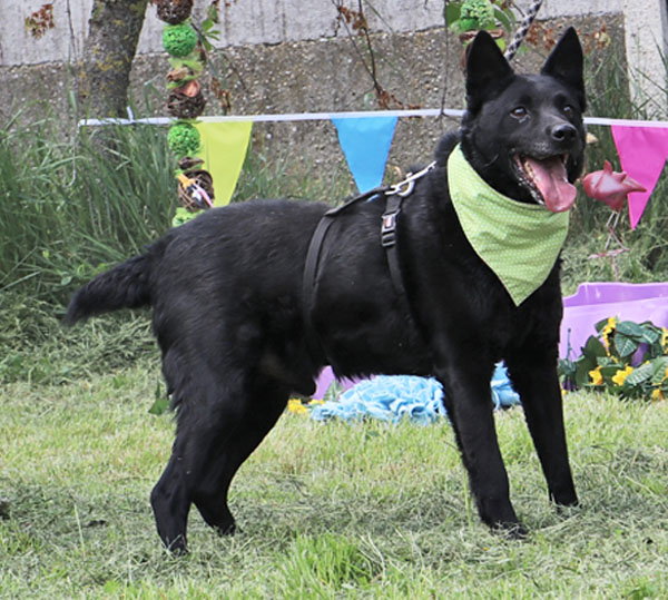 Nach drei Wochen erfolgloser Versuche, ist es unserer Stationsleitung Melinda endlich gelungen den bildhübschen Tàltos einzufangen und im Tierheim in Sicherheit zu bringen. Seit mehreren Wochen lief der arme Bub, mit einem roten Seil um seinen Hals, orientierungslos herum. In der Station zeigt sich Táltos sehr lieb und freundlich. Er ist den Menschen gegenüber ganz aufgeschlossen und wartet nun darauf mit seiner neuen Familie die grosse weite Welt zu entdecken. Männern gegenüber besitzt er anfänglich eine gewisse Scheu, diese baut er aber ab, wenn er merkt, dass "dieser Mann" nichts Böses möchte! Táltos benötigt in seinem Alltag genug Auslastung, viel Bewegung in der freien Natur und kopflastige Aufgaben. Er ist ein sehr lernfreudiger Bub und er sollte noch einige Dinge des Hunde-ABC gelehrt bekommen. Wir suchen für Táltos ein passendes Zuhause bei sportlich aktiven Menschen, die genügend Zeit und Engagement für unsere schwarze Schönheit aufbringen können. Táltos sucht ein dauerhaftes Zuhause mit 100 % Familienanschluss.