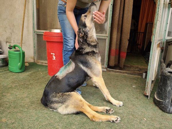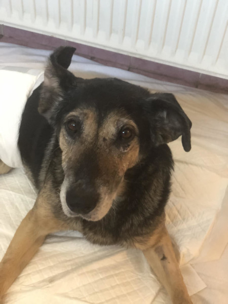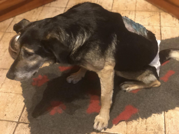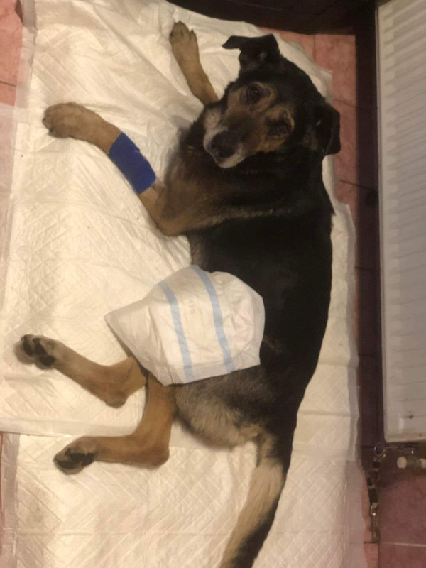 Ein entsetzlicher Unfall ereignete sich am Samstagabend in Nagyatad. Ivett, die Stationsleitung, bekam einen schockierenden Notruf von einem Mitarbeiter der Bahn! Was war passiert? Nova, ein Streuner und Straßenhund, wurde von einem herannahenden Zug erfasst und dabei sehr schwer verletzt. Der Lokführer hat glücklicherweise den Zusammenstoss nicht ignoriert und bemerkt, dass der Hund zwischen den Schienenpaaren noch lebt und seinen Kopf hebt! Ivett fand das arme ältere Kerlchen völlig traumatisiert und geschockt ca. 800 Meter von der tatsächlichen Unfallstelle. Warum Nova auf den Schienen war und wie er dort hinkam, wissen wir natürlich nicht. Vielleicht wollte er diese einfach nur überqueren und der Zug konnte nicht mehr rechtzeitig bremsen. Die Verletzungen von Nova scheinen ziemlich schwerwiegend zu sein. Den grössten Schlag hat sicherlich sein Kopf abbekommen, aber auch seine Wirbelsäule scheint in Mitleidenschaft gezogen. Derzeit kann Nova, den Namen hat er übrigens von Ivett erhalten, nicht aufstehen oder gar laufen. Seine Hinterbeine spielen nicht mit und auch „sein Geschäftchen“ selbständig erledigen ist aktuell unmöglich.