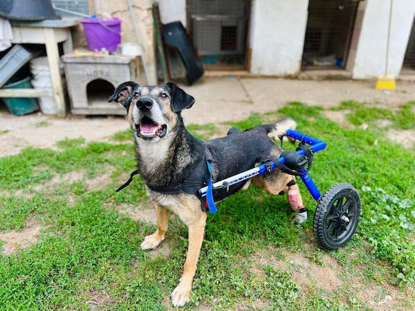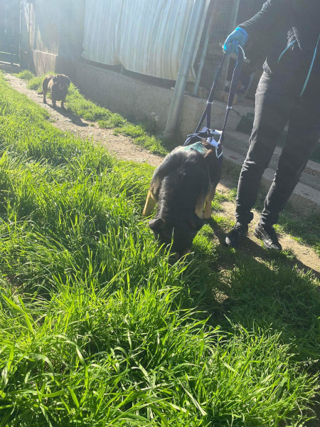 Nova hat seine letzte Akupunktursitzung erhalten. Die Stationsleitung hat uns nun mitgeteilt, dass Nova voraussichtlich nicht mehr selbständig laufen kann, glücklicherweise aber keine Schmerzen hat. Trotz seines Handicaps zeigt sich Nova allerdings total glücklich und liebt seinen Rolli.
