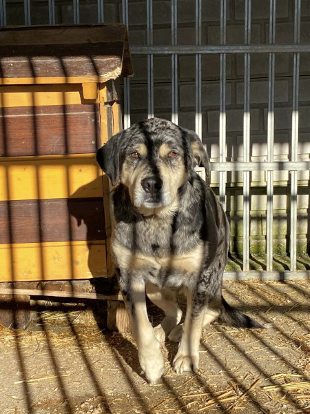 Morgo ist ein bildhübscher Mischlingsrüde, der am 10.10.2022 geboren wurde und in seiner Vergangenheit kein schönes Leben hatte. Er wurde von seinem Besitzer an einer Kette gehalten und sein Halsband war mit mehreren Schrauben fixiert. Bei der Abgabe von Morgo in der Villa Wuff konnte das Halsband nur mit Mühe vom Besitzer selbst entfernt werden. Eine schmerzhafte Erfahrung, die Morgo zum Glück hinter sich hat. Trotz seiner Vergangenheit zeigt sich Morgo als lernwilliger und liebenswerter Hund, der mittlerweile gut an der Leine läuft und gerne spazieren geht. Mit Hündinnen versteht er sich gut, bei Rüden entscheidet allerdings die Sympathie. Morgo sucht ein Zuhause bei erfahrenen Hundeliebhabern, die ihm mit Geduld und Einfühlungsvermögen begegnen. Er braucht Zeit, um Vertrauen aufzubauen, und sollte nicht bedrängt werden. Wenn man ihm die Möglichkeit gibt, sein Tempo selbst zu bestimmen, zeigt er sich von seiner besten Seite. Natürlich muss auch unser Morgo erst noch verstehen wie ein Hundeleben richtig funktioniert, deshalb sollten seine Menschen Freude daran haben, mit ihm das Hunde-ABC liebevoll konsequent zu üben und ihn geduldig an die ihm noch unbekannten Dinge des Alltags heranführen. Da Morgo kein Hund für Ersthundehalter ist, setzen wir Hundeerfahrung bei einer Vermittlung voraus. Morgo möchte zukünftig mit seinen neuen Menschen auf Entdeckungstour gehen und endlich die grosse weite Welt erkunden. Für unseren unternehmungslustigen Vierbeiner suchen wir gleichgesinnte Zweibeiner mit viel Zeit, die Spass daran haben seinen Bewegungsdrang zu befriedigen und ihn hundegerecht sowohl körperlich als auch geistig auslasten. Morgo ist sicherlich kein Couchpotato! Er will geliebt werden, dazu gehören und durchstarten! Wo darf er nun endlich mit seiner eigenen Familie glücklich werden und für immer bleiben?