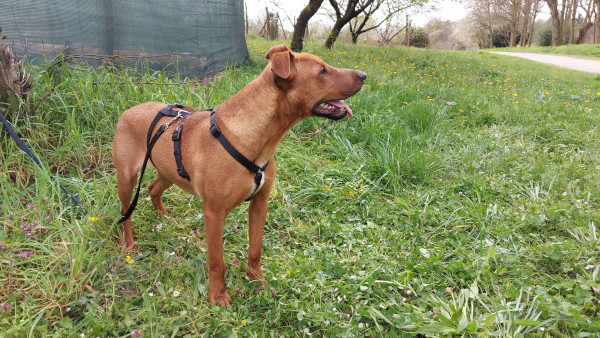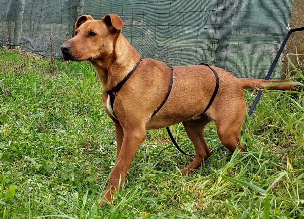 Unser hübscher Vili wurde allein und orientierungslos im Wald gefunden. Vermutlich wurde er ausgesetzt und dort einfach zurückgelassen. Obwohl er in seinem bisherigen Leben offensichtlich nicht viel Schönes erfahren durfte, zeigt Vili sich in der Station lieb, freundlich und aufgeschlossen. Er freut sich über jegliche Art von Aufmerksamkeit, ist interessiert an seiner Umwelt und hat sehr viel Freude an Bewegung. Der junge Rüde wird auf ca. 1 Jahr geschätzt (Stand 04/2024) und da uns seine Elterntiere nicht bekannt sind, können wir leider nichts zum genauen Rassemix sagen. Seinem aktuellen Aussehen nach, könnte Vili jedoch ein Staffordshire Terrier-Mischling sein. Aktuell gehören andere Rüden nicht unbedingt zu seinen Freuden, aber mit Hündinnen scheint er gut verträglich zu sein. Nun suchen wir nach einem verantwortungsbewussten und dauerhaften Zuhause, bei warmherzigen Menschen, die Vili als vollwertiges Familienmitglied aufnehmen und ihm das Leben von der schönen Seite zeigen möchten. Da Vili ein sehr sportlicher Typ ist, suchen wir Hundefreunde die wissen wie man solch ein cleveres Energiebündel sowohl physisch als auch psychisch auslasten kann. Weiterhin suchen wir unternehmungslustige Menschen, die selbst auch viel Spass und Vergnügen an Bewegung haben. Ein Besuch in der Hundeschule wäre von Vorteil, da unser Jungspund noch alle wichtigen Dinge im Leben lernen muss, damit er ein souveräner Begleiter werden kann. Wer hat ein Herz für unseren bildschönen Vierbeiner und gibt ihm eine Chance?