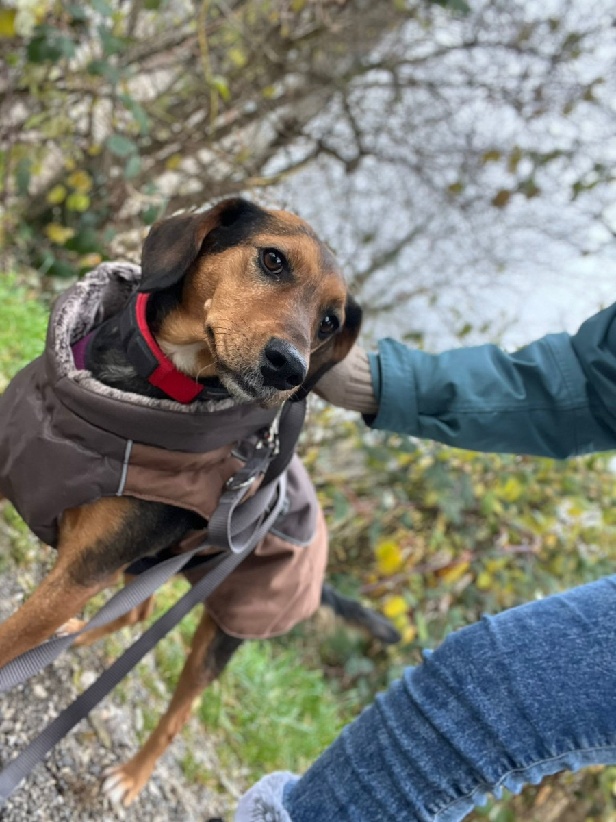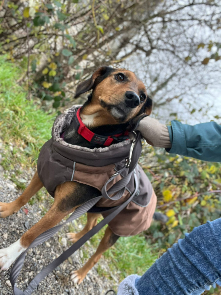 Wer Carly trifft, merkt sofort: Diese junge Hündin bringt nicht nur Lebensfreude mit, sondern auch eine ordentliche Portion Schalk im Nacken. Carly befindet sich momentan in der Schweiz auf einer tollen Pflegestelle und dort wird fleissig mit ihr gearbeitet. Denn Carly möchte alles lernen. Wirklich alles. Am liebsten gleichzeitig. Obwohl sie noch jede Menge vom Hunde-ABC üben muss, macht sie das mit so viel Begeisterung, dass man ihr einfach nicht böse sein kann.