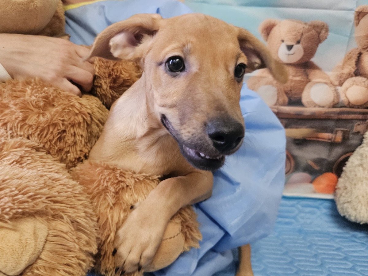 Frederico, Flummy, Fede, Filiz, Flavia und Fura wurden gemeinsam mit zwei Hündinnen und einem weiteren Rüden völlig sich selbst überlassen im Wald entdeckt. Zum Glück wurde ein aufmerksamer Jäger auf die verängstigte Hundegruppe aufmerksam und verständigte sofort das Tierheim. Die Tierheimleiterin zögerte keine Sekunde und brachte alle Vierbeiner in Sicherheit in der Villa Wuff. Mittlerweile sind allesamt gut versorgt, gesund und bereit, die große weite Welt zu erobern. 4 kleine Prinzen und 2 wunderschöne Prinzessinnen sind bereit für das Abenteuer leben und suchen ihre eigenen liebevollen Familien. Unsere niedlichen Glücklichmacher sind ca. 3 Monate alt (Stand 04/2025) und typische Hundekinder, denn sie zeigen sich vergnügt, verspielt, neugierig und menschenbezogen. Die Geschwister lieben es, zusammen zu spielen, zu toben, ihre Umgebung zu erkunden und Herzen zum Schmelzen zu bringen. Jeder von ihnen bringt seinen ganz eigenen Charme mit, aber eines haben alle gemeinsam; eine ordentliche Portion an Lebensfreude und jede Menge Unsinn im Kopf. Natürlich sind unsere Babys noch ganz grün hinter ihren Ohren und müssen deshalb von ihren neuen Menschen liebevoll und geduldig alles beigebracht bekommen, was so ein kleiner Pfotenknirps für sein weiteres Leben wissen muss. Ebenso sollten sich die neuen Besitzer bewusst sein, dass Welpen nebst viel Freude auch jede Menge Arbeit und Verantwortung mit sich bringen, damit sie sich zu tollen Begleitern entwickeln können. Für unsere entzückenden Goldstücke suchen wir verantwortungsbewusste und geduldige Menschen. Wir suchen liebe Hundefreunde, die an ihr neues Familienmitglied vorerst keine übertriebenen Erwartungen stellen und Verständnis zeigen, wenn nicht gleich alles von Anfang an optimal läuft. Unsere Hundekinder sind alle noch sehr jung und wissbegierig, daher wäre es wichtig, dass ihre zukünftigen Familien bereit sind, viel Zeit und Geduld in die Erziehung zu investieren. Unsere kleinen Rabauken wünschen sich zukünftig nicht nur soziale Kontakte zu anderen Hunden, sondern auch hunde- und altersgerechte Auslastung, viele Streicheleinheiten und natürlich vollen Familienanschluss. Dann noch der Besuch einer guten Hunde/Welpen Schule und die Kleinen werden dauerhaft ein glückliches und erfülltes Hundeleben führen. Gitti und Cuki, die beiden Hündinnen aus der Gruppe, sind die Mütter der Kleinen. Welcher Welpe zu welcher Mutter gehört, kann allerdings nicht zugeordnet werden. Beide Hündinnen haben die Babies zusammen gesäugt. Da Gitti und Cuki recht klein sind, gehen wir davon aus, dass auch ihre Kinder eher klein bleiben werden, aber wie bei allen Mischlingen gilt: eine Überraschung ist immer möglich!