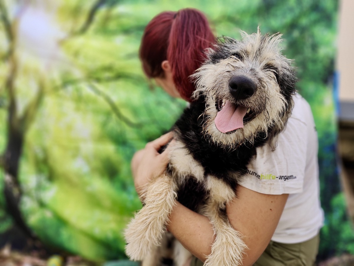 Unser entzückender Hundeschatz namens Ozzy wurde auf der Strasse allein umherirrend aufgefunden. Leider war weit und breit kein Besitzer ausfindig zu machen, sodass er in der Villa Wuff aufgenommen wurde. Dort wird Ozzy nun gut versorgt und darf in Sicherheit auf sein grosses Glück warten: eine liebevolle Familie, die ihm ein Zuhause schenkt! Ozzy ist schätzungsweise 5 Monate jung (Stand 07/2025) und ein Mischling mit einer wunderschönen Optik. Welcher Rassemix in ihm steckt, wissen wir nicht, sicher ist jedoch, dass er einzigartig süss ist! Ozzy zeigt sich als ausgesprochen freundlicher, fröhlicher und menschenbezogener Vierbeiner, der auch Fremden stets offenherzig zugeht und rasch mit ihnen Freundschaft schliesst. Unser Jungspund ist ein mutiges, verspieltes und cleveres Kerlchen, das voller Energie steckt und das Element Wasser über alles liebt. Wir wünschen uns, dass unser Goldstück nicht im Tierheim gross werden muss, sondern schon bald ein eigenes Körbchen in einer verantwortungsbewussten und fürsorglichen Familie findet. Ozzy wird mit zunehmendem Alter noch viele Flausen im Kopf haben und braucht daher Menschen an seiner Seite, welche ihm geduldig und konsequent alles Wichtige beibringen! Der Besuch einer guten Hundeschule ist unumgänglich, um Ozzy nicht nur das Hund-ABC beizubringen, sondern auch um sein schlaues Köpfchen auszulasten. Zudem sollte den neuen Menschen an seiner Seite bewusst sein, dass ein Welpe nicht nur Spiel und Spass bedeutet, sondern damit eine Verantwortung für viele Jahre einhergeht. Wer schenkt unserem Ozzy ein sorgenfreies und glückliches Leben im Kreise seiner eigenen Zweibeiner?