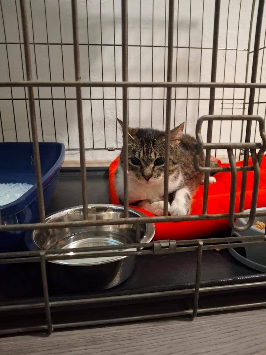 Dann erreichte eine trächtige Katze vom Lidl-Parkplatz in Csurgó den Hof. Hungrig suchte sie nach Futter, erschöpft und schutzlos. Nun befindet sie sich in Sicherheit und wird versorgt.