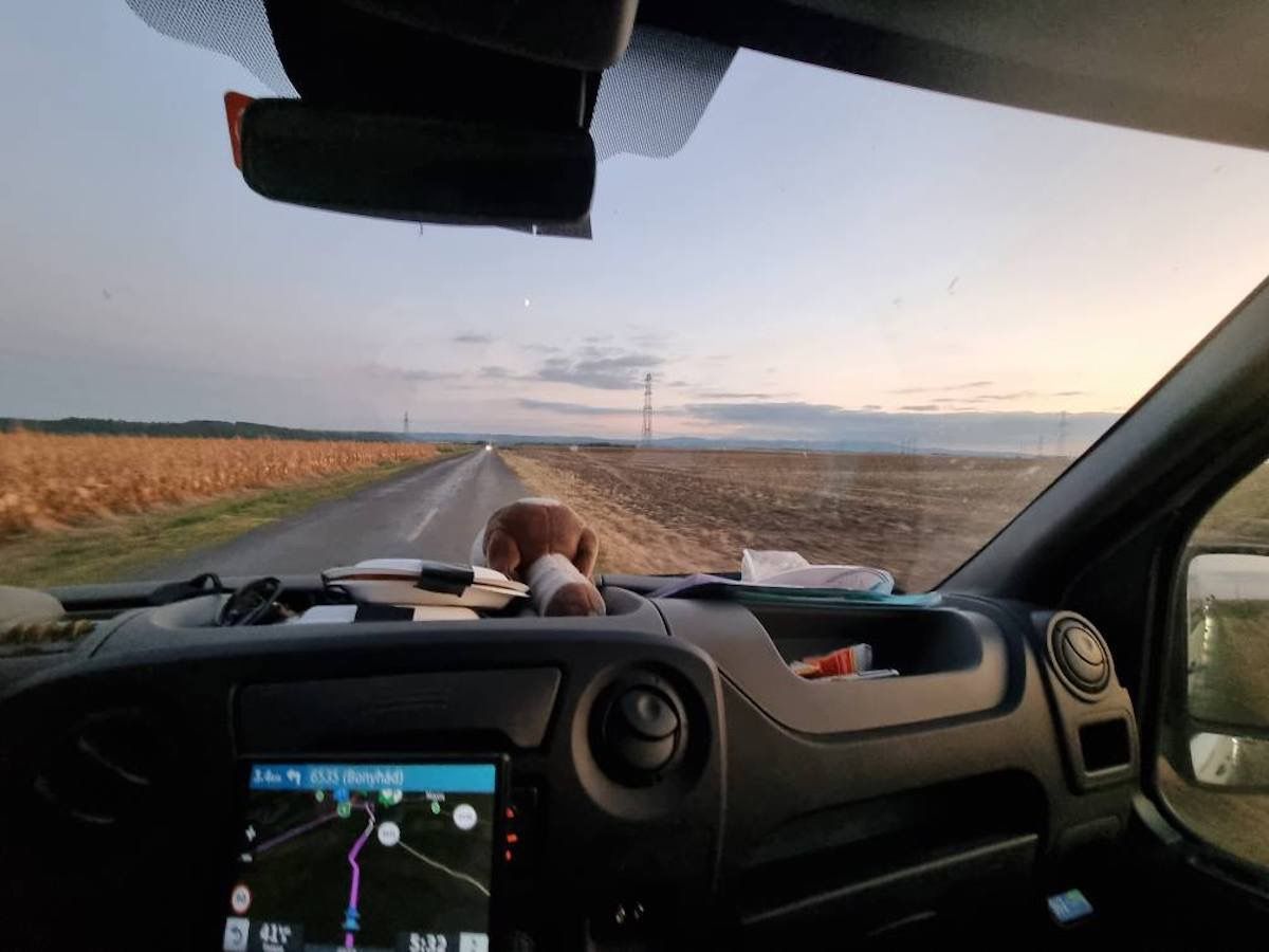 Inzwischen hat Schorsch ungarischen Boden erreicht – aber aufgepasst: rund 2 Stunden Fahrt stehen noch auf dem Plan. Heißt also: Kaffee nachfüllen, Musik lauter drehen und den Bus nochmal freundlich anschubsen.