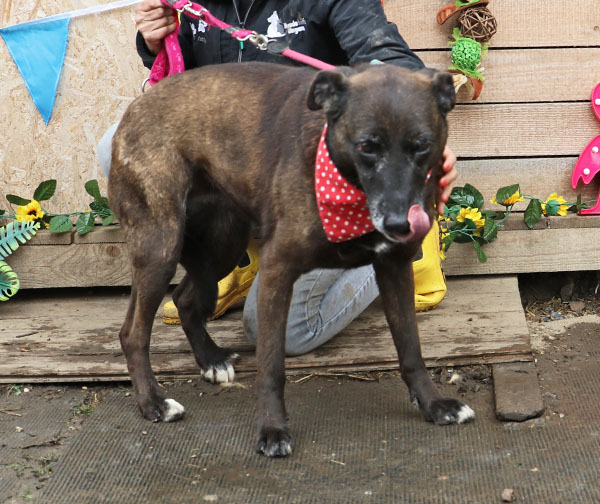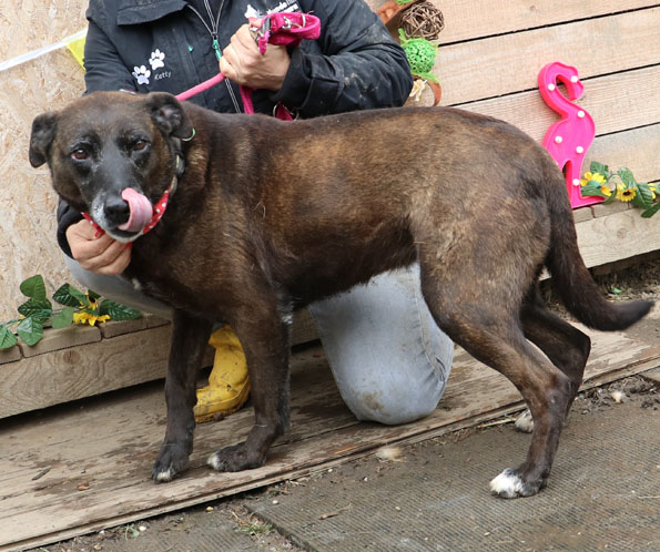 Auch Pixie gehört zu den Langzeitinsassen, seit 8 Jahren wartet sie auf eine Anfrage. Sie ist immer noch fit, aber die zunehmend graue Schnauze ist unübersehbar. Pixie liebt Menschen nach wie vor, ist sehr verschmust und zutraulich. Seit ihr Kumpan Wolfi nicht mehr da ist, lebt sie alleine im Zwinger. Gross, schwarz und dazu noch Listenhund - wir hoffen auf Menschen die sich davon nicht abschrecken lassen.