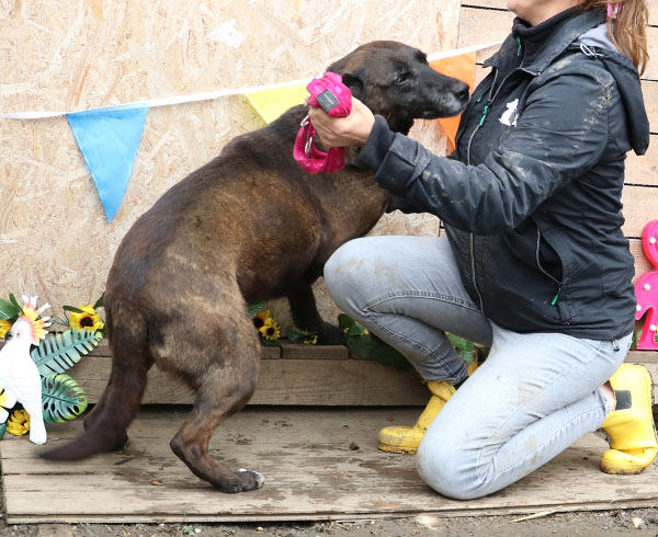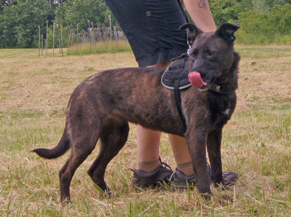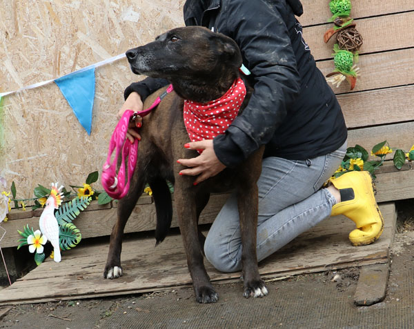 Pixie kam bereits vor mehreren Jahren ins Tierheim und wartet immer noch auf ihre Menschen. Ihre Mutter ist eine Staffordshire-Hündin, der Vater ein Deutscher Schäferhund. Pixie ist eine sehr liebe, verschmuste, aktive und verspielte Hündin und sie läuft recht gut an der Leine. Pixie war früher verträglich mit anderen Hunden und sie lebte lange Zeit zusammen mit Wolfi im gleichen Zwinger. Sie trauerte offensichtlich um den Verlust von Wolfi, denn seit er im Juli 2020 vermittelt wurde, mag sie keine anderen Hunde mehr in ihrem Zwinger.