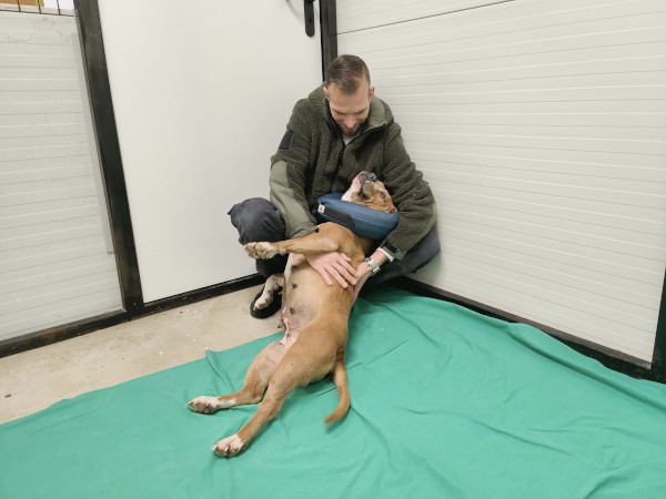 Arme, traurige Zara! Sie ist die neuste Bewohnerin der Villa Wuff. Mehr als zwei Tage sass Zara auf der Strasse am selben Platz und wartete anscheinend auf ein Wunder. Es konnte kein Besitzer ausfindig gemacht werden, sodass die Station verständigt und die Hündin abgeholt wurde. In Sicherheit angekommen erkannten ihre Betreuerinnen, dass Zara in einem eher verwahrlosten Zustand und voll mit Zecken und Flöhen war. Wir gehen davon aus, dass Zara nicht viel Gutes in ihrer Vergangenheit erleben durfte. Ihre Ohren sind kupiert und ihr Gesäuge lässt darauf schliessen, dass sie anscheinend des Öfteren Welpen geboren hat. Zara wird auf ca. 4 Jahre (Stand 05/2023) geschätzt und ist mittelgross. Wir suchen für Zara eine Patenschaft! Sie wird vermutlich ein längerer Gast der Villa Wuff bleiben, da ihre Vermittlungschancen sehr eingeschränkt sind. Zara wurde bei ihrer tierärztlichen Untersuchung auf Herzwürmer positiv getestet. Es erfolgt derzeit eine entsprechende Behandlung.