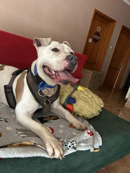 Ella wurde allein und herrenlos in Nagyatad auf der Strasse aufgegriffen. Eine Chipkontrolle blieb erfolglos und ein Besitzer hat sich nicht gemeldet. Ella ist ca. 5 Jahre (Stand 03/2024) alt und ein liebes und freundliches Hundemädchen, die sich über Aufmerksamkeit und Zuwendung freut. Derzeit befindet sie sich in Ungarn auf einer Pflegestelle und diese ist sich sicher, dass Ella einmal bei einer Familie im Haus gelebt haben muss. Sie kennt zum Beispiel Fernseher und Bett, liebt Kinder und ist absolut menschenbezogen. Gegenüber anderen Hunden zeigt sich Ella grundsätzlich verträglich, doch auf Grund ihres Rassetyps sollte sie lieber als Einzelprinzessin gehalten werden. Die Tierheimleitung vermutet bei Ella eine Mischung aus Staffordshire Terrier und eventuell Amerikanischer Bulldogge. Ella sollte geistig wie körperlich gefordert und gefördert werden. Zusätzlich sollten ihr noch einige Dinge vom Hunde-ABC mit Freude, Geduld und ohne Druck beigebracht werden, damit sie sich zu einer tollen Begleiterin im Alltag entwickeln kann. Wir suchen nun ganz dringend nach „Mr. und Mrs. Right“, wo unsere Ella endlich ankommen und ein würdiges Hundedasein geniessen darf. Verantwortungsbewusste und zuverlässige Menschen, die das Wesen und die Charaktereigenschaften dieser Hunde lieben und schätzen. Sicherheit und Geborgenheit spüren, eigene Menschen zu haben, die sie von Herzen lieben, ausgedehnte und abwechslungsreiche Spaziergänge erleben und ein vollwertiges Familienmitglied sein; all das wäre für unsere Ella ein Träumchen!