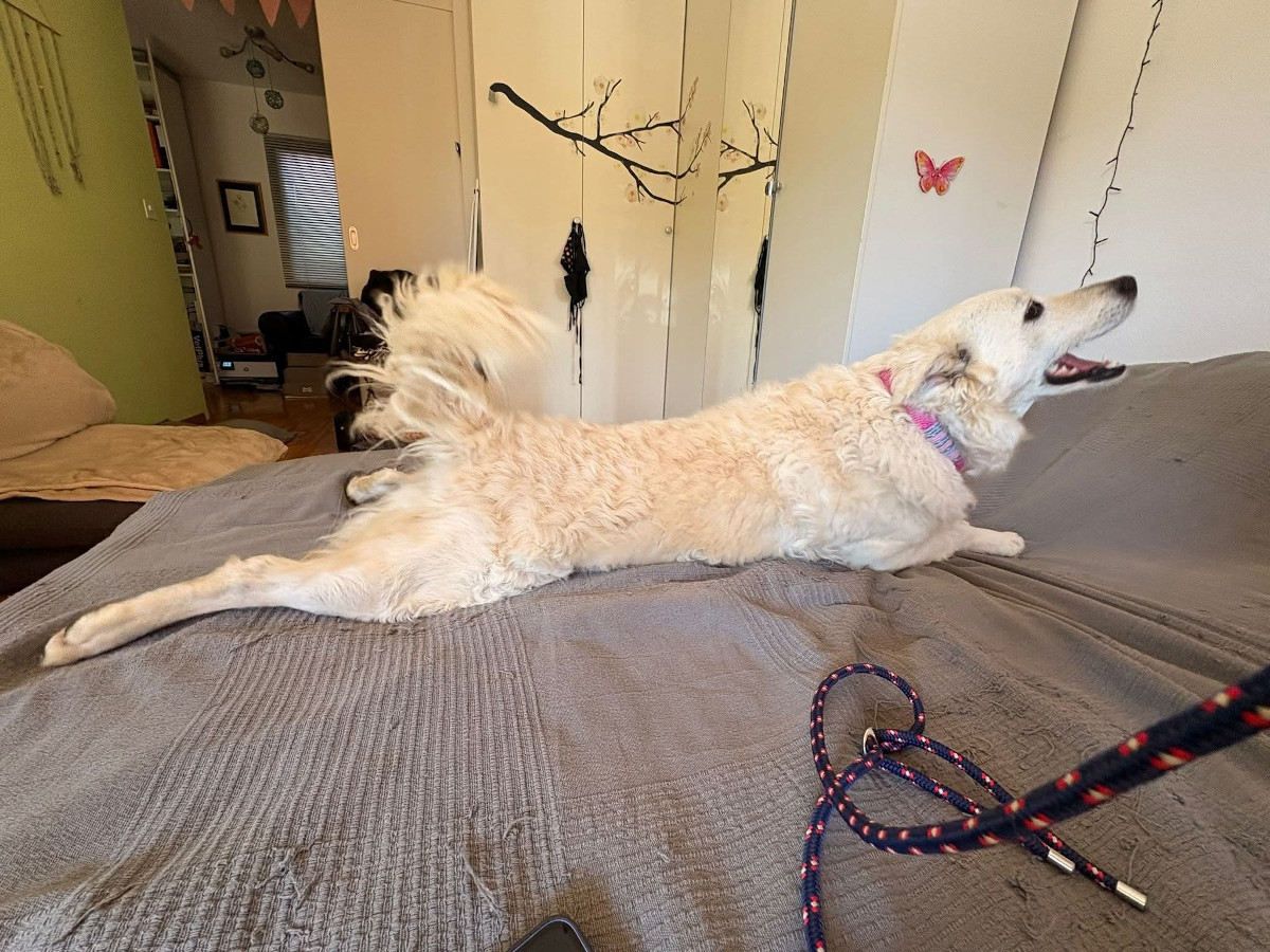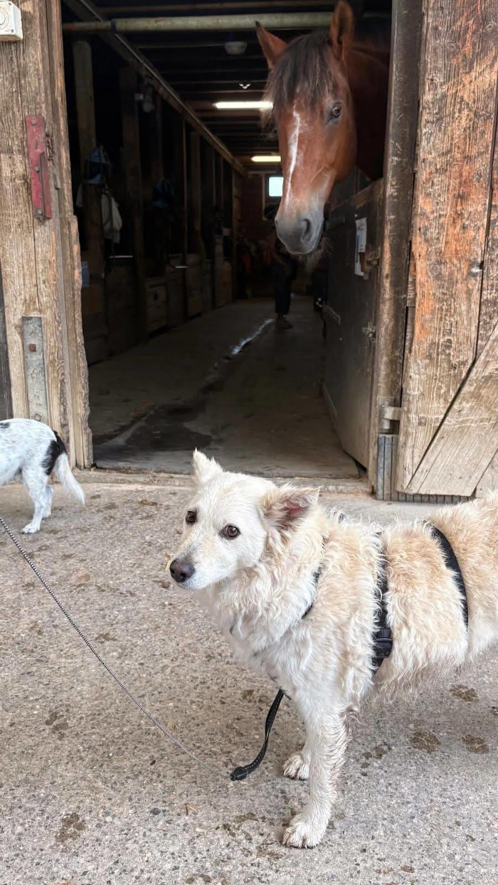 Kleine Schwächen? Klar, die hat sie wie jeder von uns. Sie möchte gerade am liebsten rund um die Uhr in der Nähe ihres Menschen sein - aber hey, das ist auch einfach wahre Liebe. Und mit der Katze im Haus musste sie sich erst arrangieren, aber auch da zeigt sich: Bóbita lernt schnell, ist sehr bemüht, alles richtig zu machen, und lässt sich gut lenken. Bóbita ist kein hyperaktiver Wirbelwind, sondern eher die gemütliche Spaziergängerin, die bald wieder etwas sportlicher wird – ein paar Extra-Kilos sind in Arbeit. Sie würde wunderbar zu einer Familie mit Kindern passen, zu Menschen, die gerne draußen sind, aber nicht den nächsten Marathon planen – oder auch zu Reitern, die einen braven Stallbegleiter suchen. Ein zweiter Hund wäre bestimmt hilfreich, damit sie sich nicht nur auf ihren Menschen fixiert. Kurz gesagt: Wer Bóbita aufnimmt, bekommt keinen Hund – sondern ein Familienmitglied mit großem Herzen und einem besonders sanften Wesen!